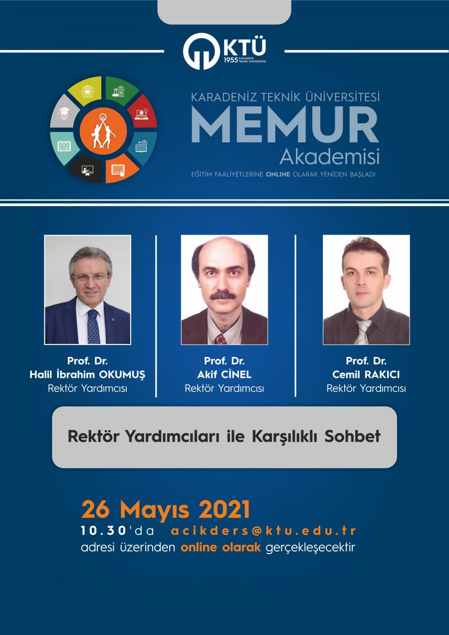Online olarak devam eden Memur Akademisi etkinlikleri, belirtilen tarihlerde saat 10:30’da acikders.ktu.edu.tr adresi üzerinden online olarak gerçekleştirilecektir.