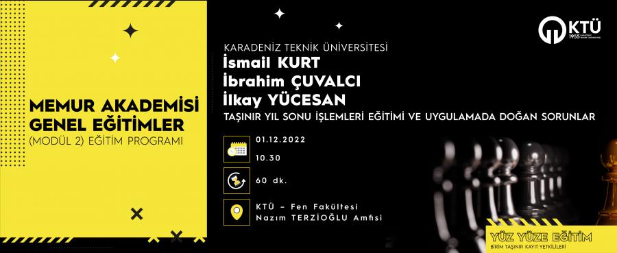 Sizlere özel olarak İsmail KURT, İbrahim ÇUVALCI ve İlkay YÜCESAN tarafından hazırlanan "Taşınır Yıl Sonu İşlemleri Eğitimi ve Uygulamada Doğan Sorunlar Eğitimi" ne davetlisiniz.