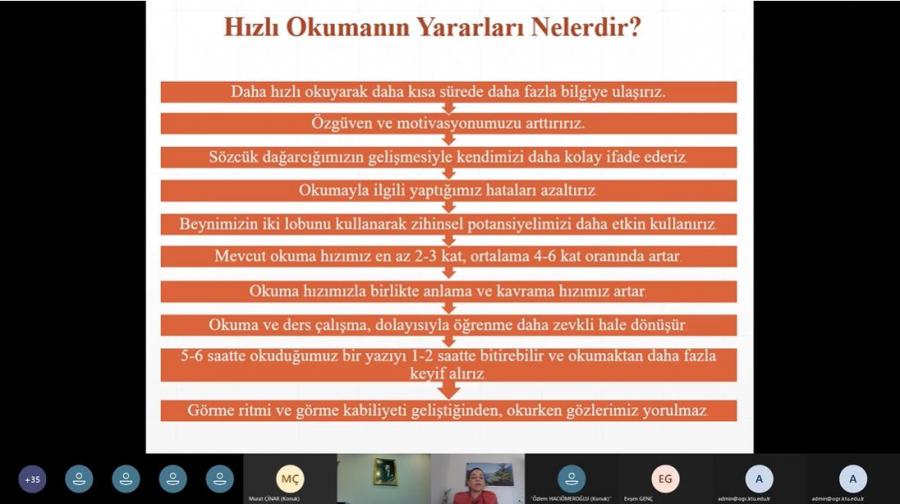 Anlayarak ve Hızlı Okuma Teknikleri Konusunda Eğitim Verildi.