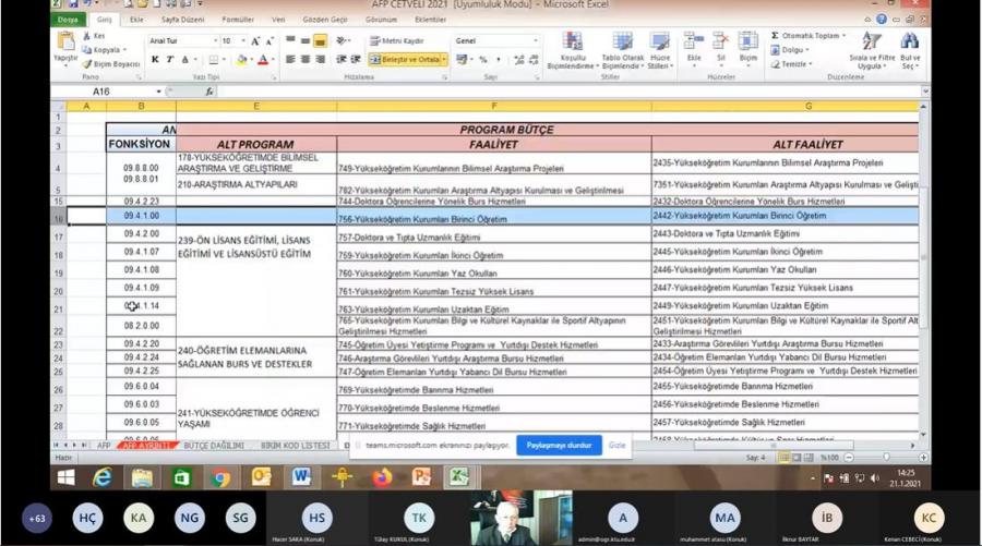 Program Bütçe Sistemine Geçiş eğitimini 21 Ocak 2021 Perşembe günü saat 13.30'da Şube Müdürü Kenan CEBECİ online olarak gerçekleştirdi. Eğitimin sonunda dinleyicilerin soruları cevaplandırıldı.