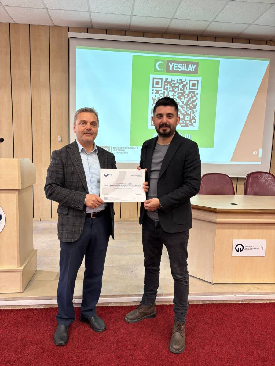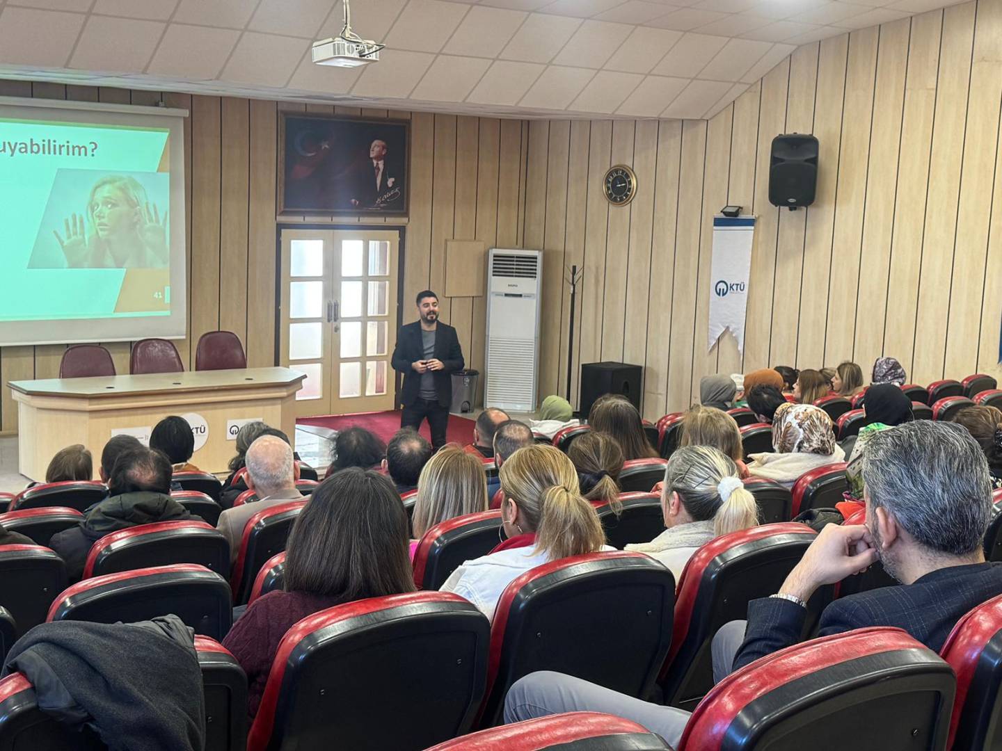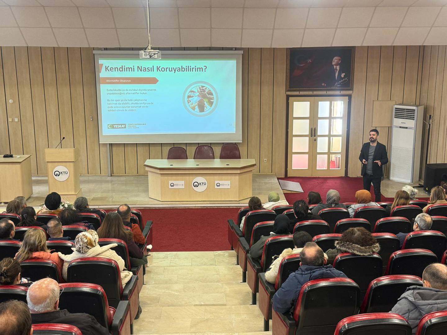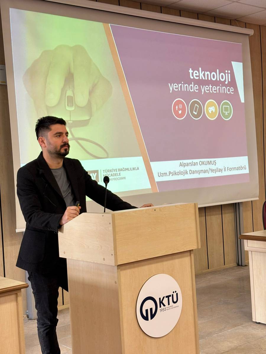 Karadeniz Teknik Üniversitesi (KTÜ) personeline yönelik, sağlıklı yaşam ve teknoloji kullanımı farkındalığını artırmaya yönelik önemli bir eğitim başarıyla tamamlandı. Millî Eğitim Bakanlığı Yeşilay İl Formatörü Uzm. Psikolojik Danışman Alparslan Okumuş tarafından “Sağlıklı Yaşam ve Teknoloji Bağımlılığı” konulu eğitim, Fen Fakültesi Nazım Terzioğlu Amfisinde yoğun katılımla gerçekleştirildi.