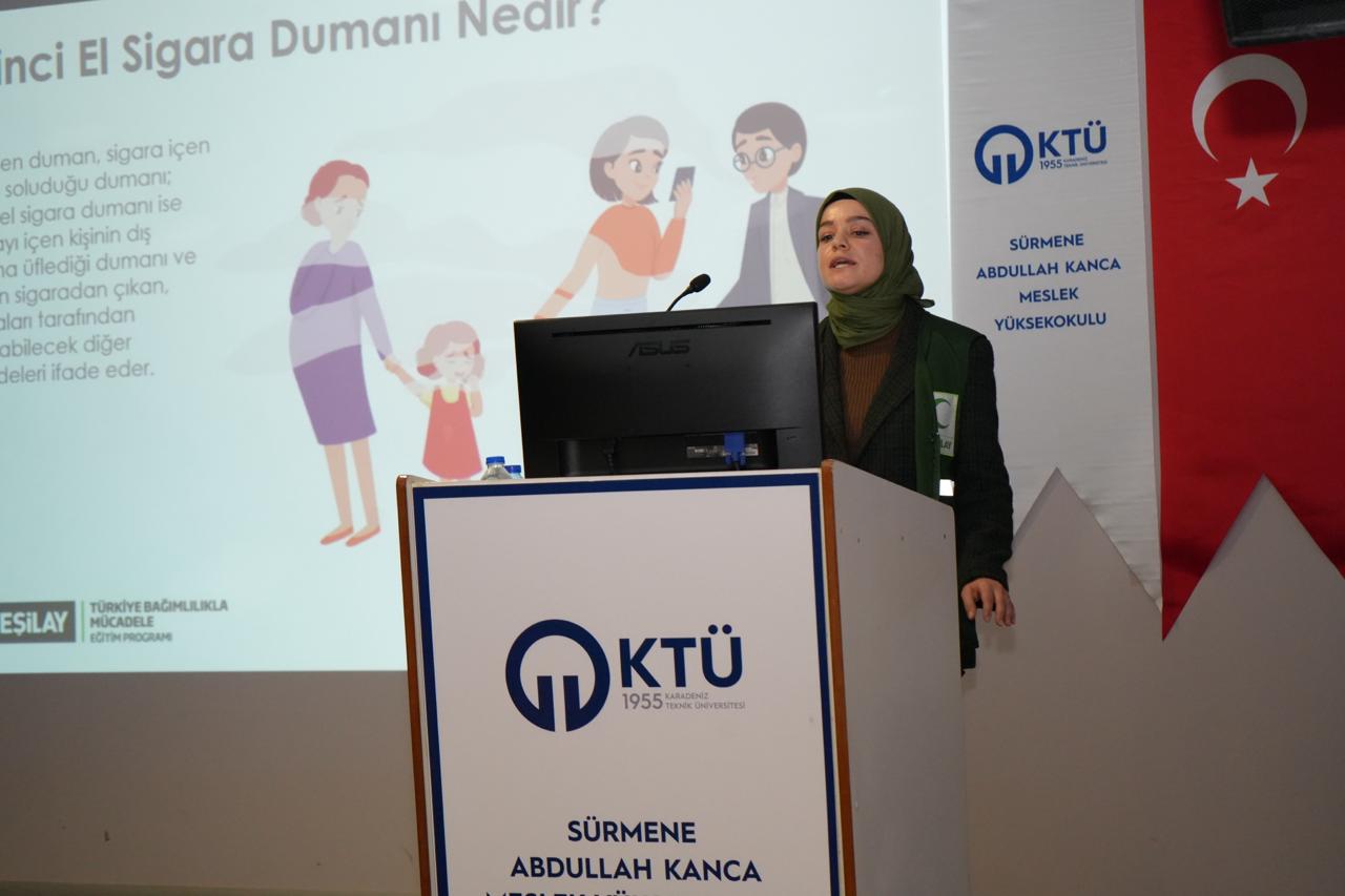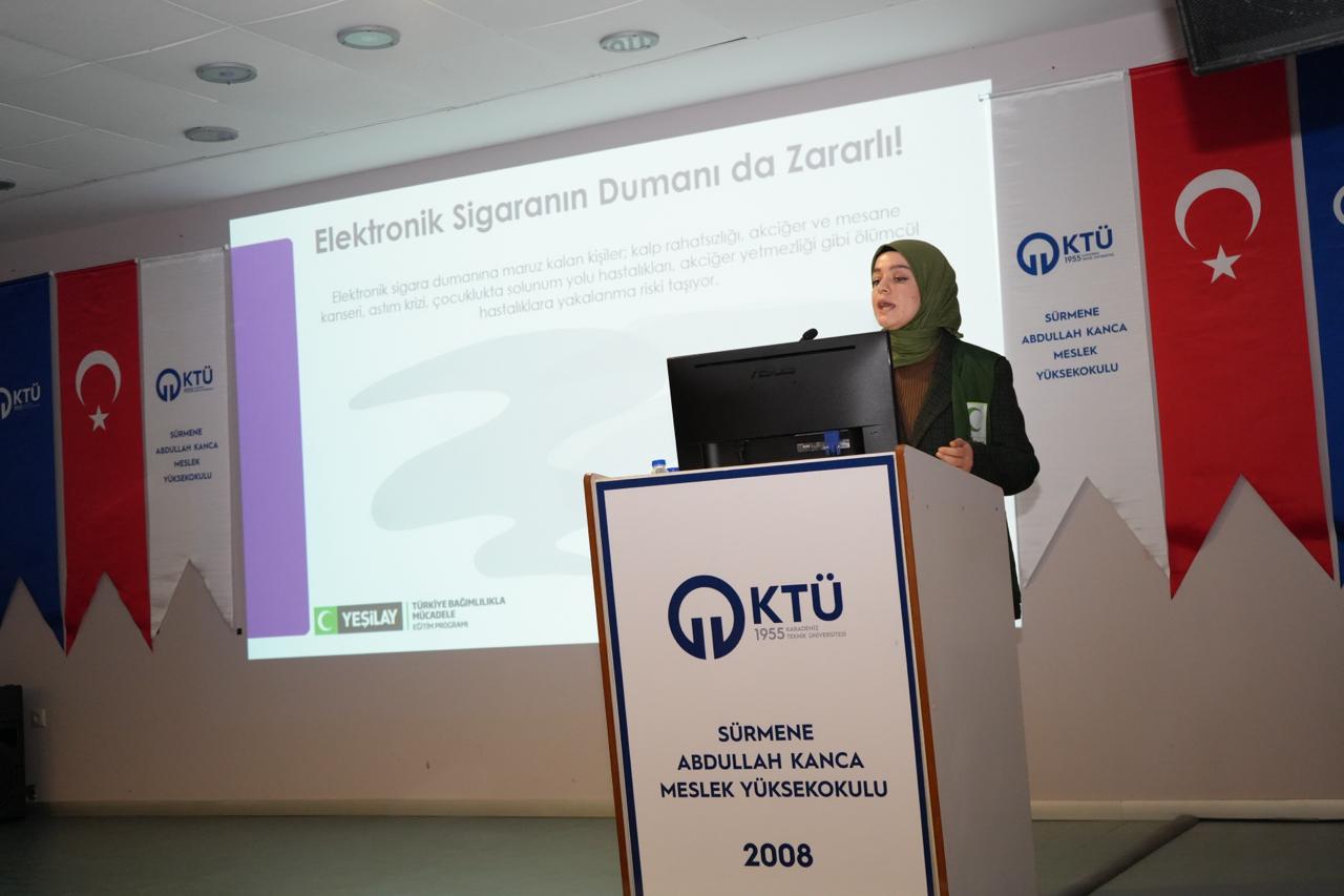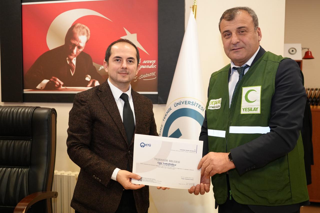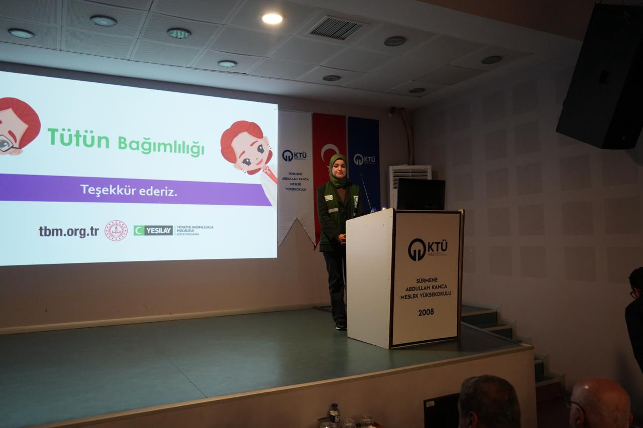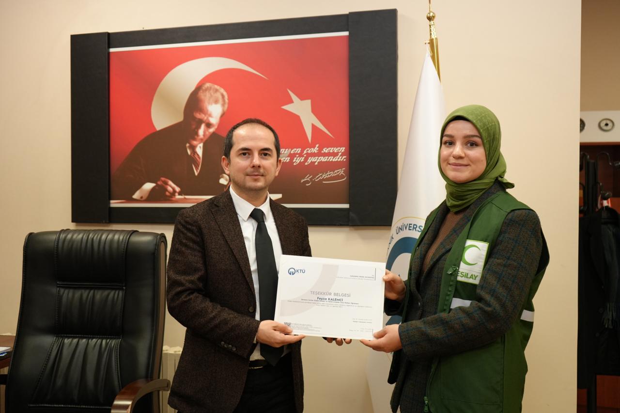 19.11.2025 tarih ve 05 numaralı Birim Danışma- Dış Paydaş toplantısı kararı ile, çevre bilinci ve sürdürülebilirlik kapsamında, Yeşilay Kulübü Sürmene İlçe temsilciği gönüllüleri ile bir araya gelerek; Meslek Yüksekokulumuzda bilgilendirme ve tanıtım etkinliği düzenledik. Etkinlik boyunca tanıtım ve bilgilendirme yapan Yeşilay Sürmene İlçe Temsilcisi Sayın: Cem YAKUPOĞLU (Sürmene Milli Eğitim Müdürü), Feyza KALEMCİ (Sürmene Cevher Özden Mesleki ve Teknik Anadolu Lisesi Rehber Öğretmeni), ve gönüllü çalışanlarına teşekkür ederiz. 25.12.2025