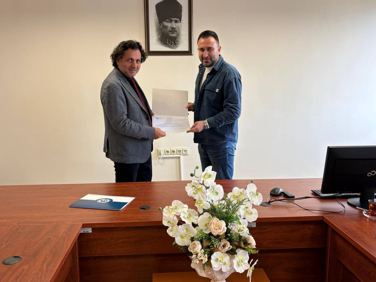 2025 yılı içerisinde yayınladığı makale, bildiri ve kitap bölümü çalışmalarıyla Yüksekokulumuzda en fazla akademik yayına imza atan bölüm akademisyenlerimizden Öğr. Gör. Dr. Ahmet Cem ESENLİKCİ ile SSCI, SCI, SCIE alan indekslerinde yayın yapan Öğr. Gör. Dr. Mehmet Ali ENGİN ve Öğr. Gör. Dr. Sadrettin ÇODUR'a, akademik üretkenlikleri ve kurumsal başarıya sundukları katkılar dolayısıyla Yüksekokul Müdürümüz Prof. Dr. Özcan ÖZYURT tarafından teşekkür belgesi takdim edildi.