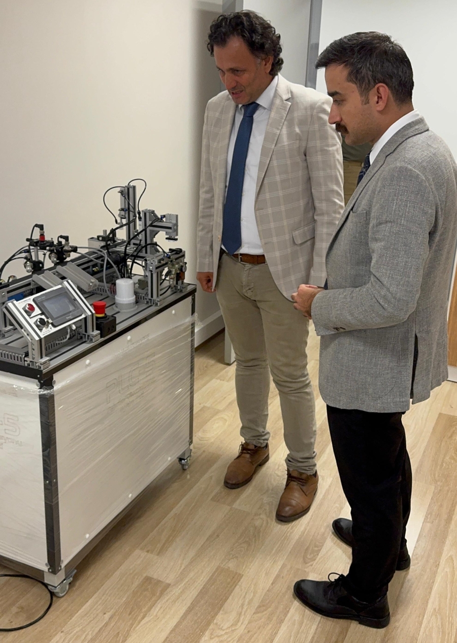 Ziyarette, Yüksekokul Müdürümüz Prof. Dr. Özcan ÖZYURT tarafından Meslek Yüksekokulumuzun bölümleri, yürütülen akademik çalışmalar ve öğrencilerimize sunulan eğitim imkânları hakkında kapsamlı bilgiler verildi. Ayrıca okulumuz derslikleri, yeni kurulan bilgisayar laboratuvarı ile PLC laboratuvarı gezilerek yapılan çalışmalar tanıtıldı.