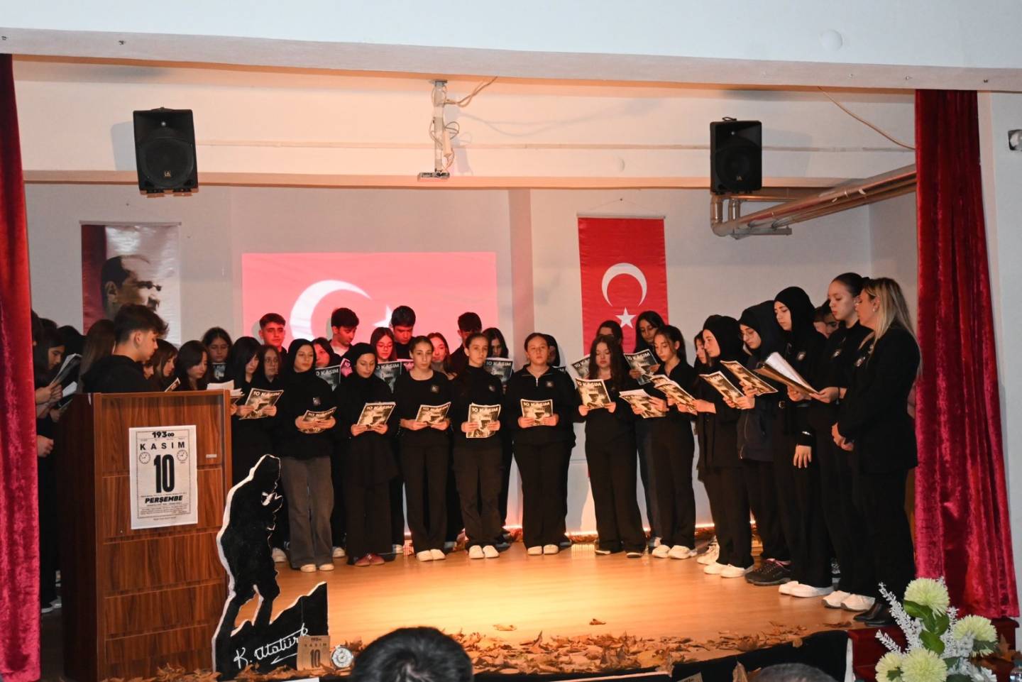 Etkinlikler kapsamında Araklı Anadolu Lisesi Konferans Salonu’nda düzenlenen anma programında öğrencilerin sergilediği gösteriler katılımcılara duygusal anlar yaşattı. Cumhuriyetimizin kurucusu, büyük önder Gazi Mustafa Kemal Atatürk, vefatının 87. yılında saygı, minnet ve rahmetle anıldı. Programda sergiledikleri anlamlı performanslarla bizleri duygulandıran kıymetli öğrencilerimizi ve emek veren öğretmenlerimizi yürekten tebrik ederiz.