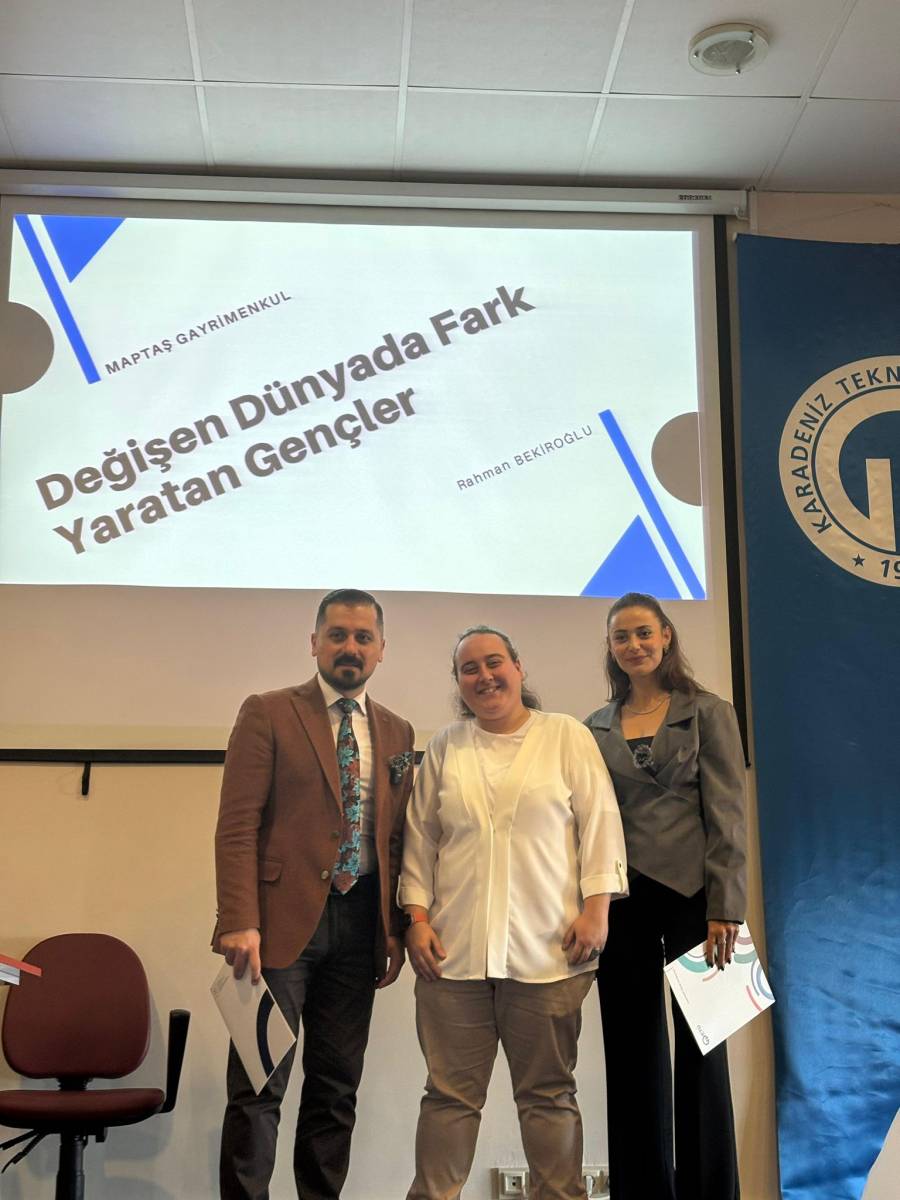 Meslek Yüksekokulumuzda 30.10.2025 tarihinde Maptaş Gayrimenkul Kurucusu Rahman BEKİROĞLU ve bpluses Sosyal Medya ve Dijital İçerik Ajansı Kurucusu Betül KOCA GEDİKLİ'nin konuşmacı oldukları Değişen Dünyada Fark Yaratan Gençler Konferansı gerçekleştirildi.