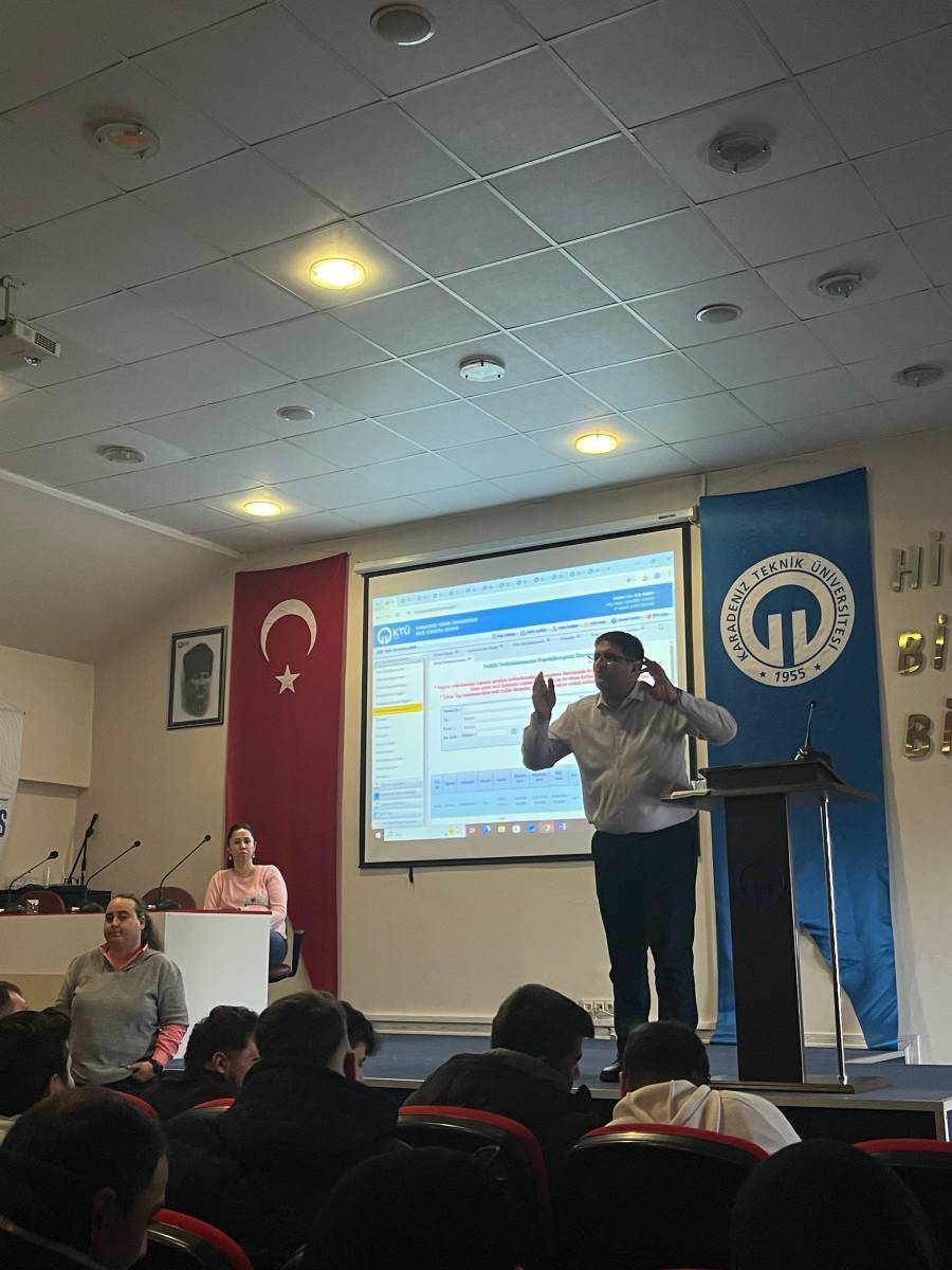 Staj yönetim sistemi, staj yönergesi, staj takvimi, staj başvuru belgeleri, staj dosyası, yoklama çizelgesi ve ilgili evrakların nasıl doldurulacağı ile staj sonlandırma işlemleri hakkında detaylı bilgi aktarılan toplantıda en sık yapılan hatalar da vurgulandı. Soru - cevap kısmının ardından toplantı sona erdi.