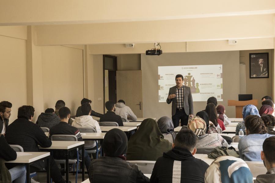 Okulumuzda 25 Nisan 2019 Perşembe günü Saat 11.00'de teknik resim salonunda Trabzon İŞKUR Müdürlüğü iş ve meslek danışmanı Ömer BAYBURT tarafından ''Etkili Öz Geçmiş Hazırlama ve Mülakat Teknikleri Eğitimi'' Yapıldı.Eğitime 60 öğrenci katıldı. Eğitim sonunda Meslek Yüksekokulu Müdür Yardımcısı Öğr.Gör.Dr. Hasan ÖZTÜRK tarafından iş ve meslek danışmanı Ömer BAYBURT'a teşekkür belgesi takdim edildi.