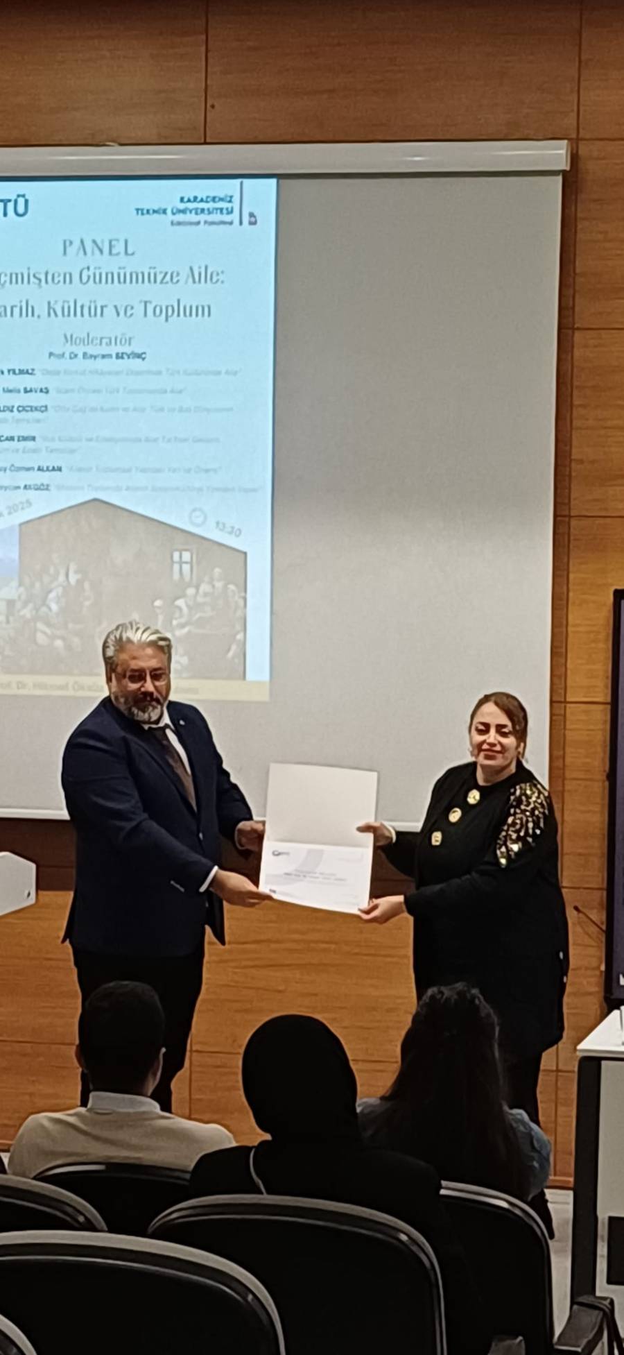 18 Aralık 2025 tarihinde, Karadeniz Teknik Üniversitesi Edebiyat Fakültesi tarafından düzenlenen “Geçmişten Günümüze Aile: Tarih, Kültür ve Toplum” başlıklı panele bölümümüz öğretim elemanlarından Doç. Dr. Nazan Yıldız Çiçekçi konuşmacı olarak katılmıştır. Hocamız, panel kapsamında “Orta Çağ’da Kadın ve Aile: Türk ve Batı Dünyasının Karşılaştırmalı Edebi Temsilleri” başlıklı sunumunu gerçekleştirmiştir.