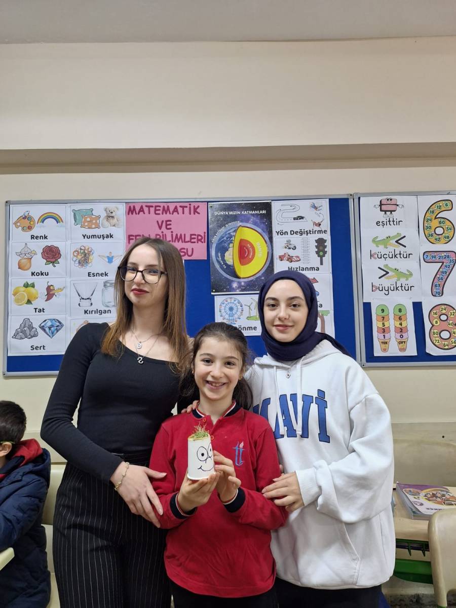 Ticaret İlkokulu öğrencileri ile bir araya gelinen etkinlikte, çocuklara doğa sevgisini aşılamak ve sorumluluk bilincini geliştirmek amacıyla chia tohumu ile "Çim Adam" yapımı gerçekleştirilmiştir. Minik öğrencilerin büyük bir heyecanla katıldığı bu atölye çalışmasında, bitkilerin büyüme süreci uygulamalı olarak anlatılmıştır.