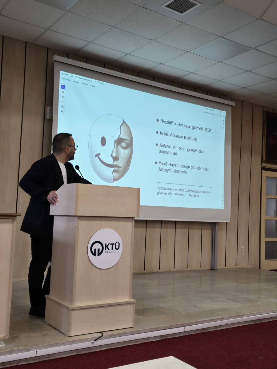 Sunum, Recep Tayyip Erdoğan Üniversitesi, Sağlık Bilimleri Fakültesi, Sosyal Hizmet Bölümü öğretim üyesi Doç. Dr. Ozan Selçuk tarafından yapıldı. Etkinlikte; stres, gelecek kaygısı ve yaşam dengesi konuları ele alınarak, bireyin fiziksel ve ruhsal iyilik halinin korunmasına yönelik bilimsel temelli bir çerçeve sunuldu. Pozitif psikoterapi yaklaşımı doğrultusunda geliştirilen “denge modeli” ile beden, başarı, ilişkiler ve anlam boyutlarının yaşam kalitesi üzerindeki etkileri örneklerle aktarıldı.