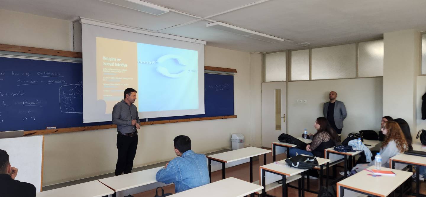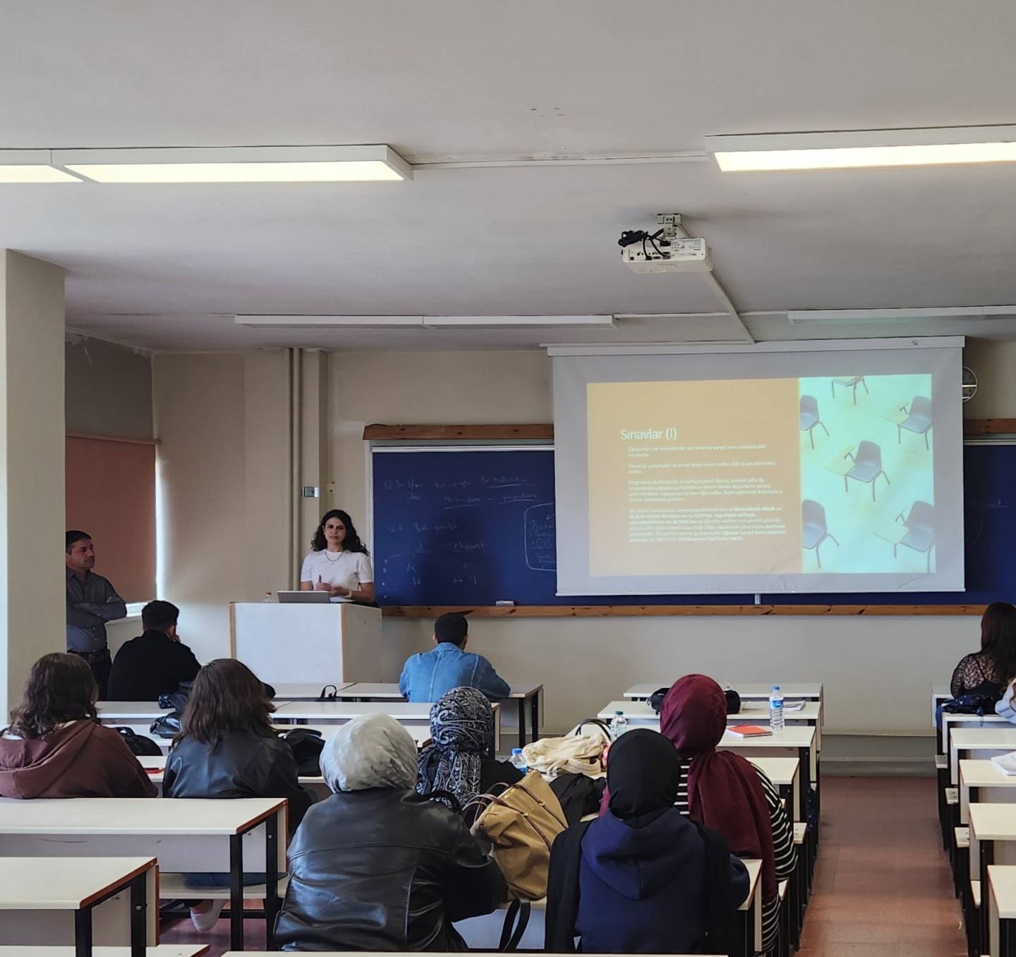 Sunumu Arş. Gör. Dr. Ayşıl Kabakçı gerçekleştirdi. Programa ayrıca Bölüm Başkanı Prof. Dr. Salih Dursun, Bölüm Başkan Yardımcıları Doç. Dr. Mustafa Şen ve Dr. Öğr. Üyesi Yusuf Erdem Tunç katılarak öğrencilerle bir araya geldi.