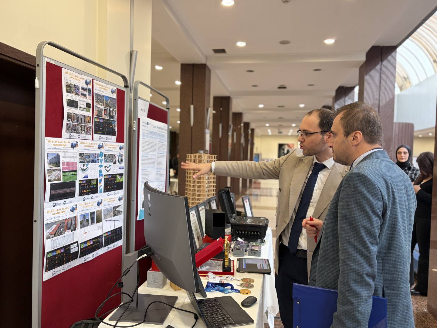 Forum boyunca, merkezimizde Prof. Dr. Ahmet Can Altunışık, Dr. Öğr. Üyesi Fatih Yesevi Okur ve Dr. Öğr. Üyesi Ebru Kalkan Okur tarafından geliştirilen yapı sağlığı izleme patentleri, yenilikçi sensör sistemleri, aktif olarak izlenen yapılar ve ticarileşmiş Ar-Ge çözümleri, etkinlik alanında kurulan standımızda hakemler, katılımcılar ve yatırımcılarla buluşturuldu. Standımızın gördüğü yoğun ilgi, yapı sağlığı izleme alanında geliştirilen çözümlerin uluslararası ölçekte karşılık bulduğunu ortaya koydu.