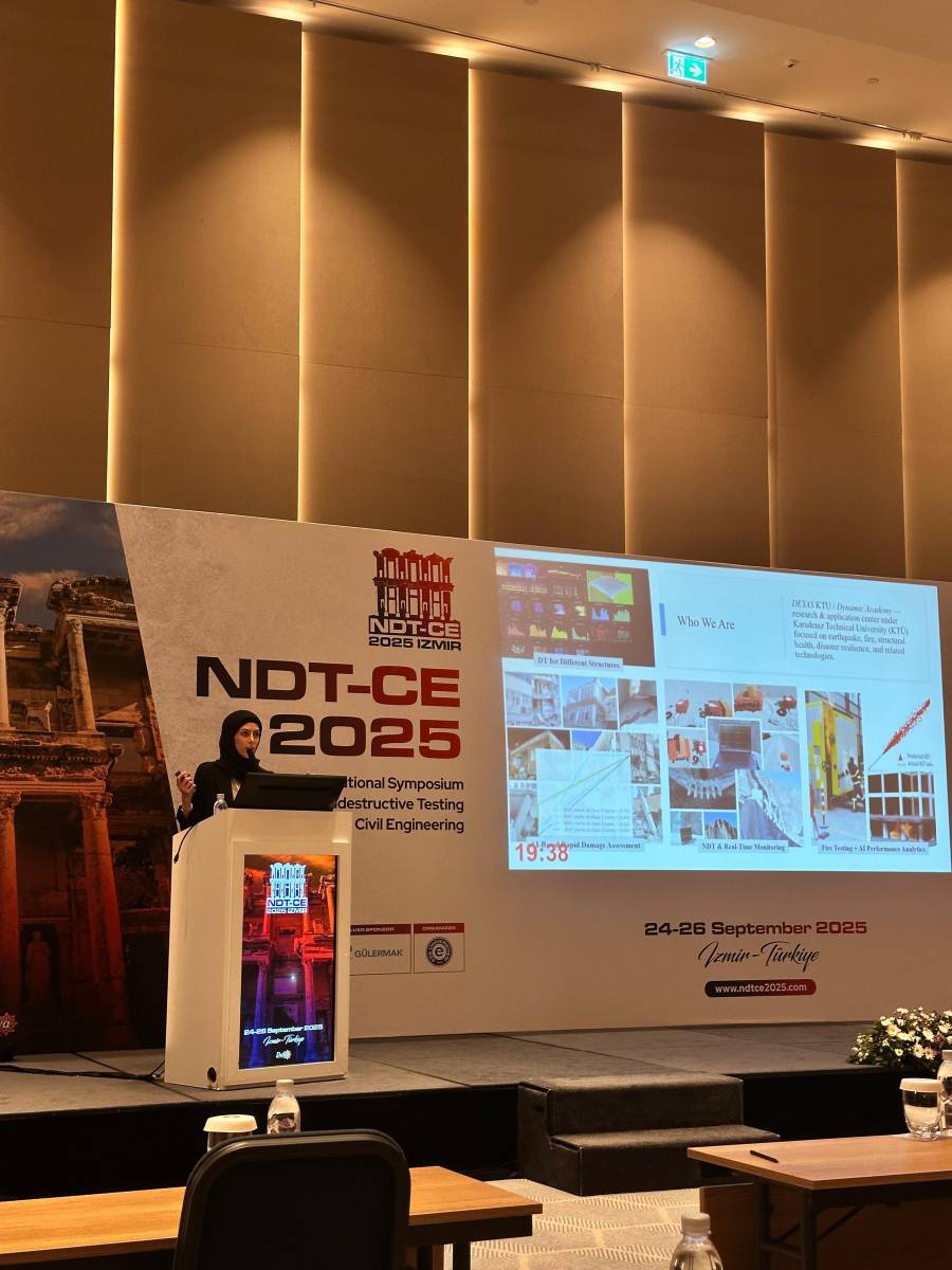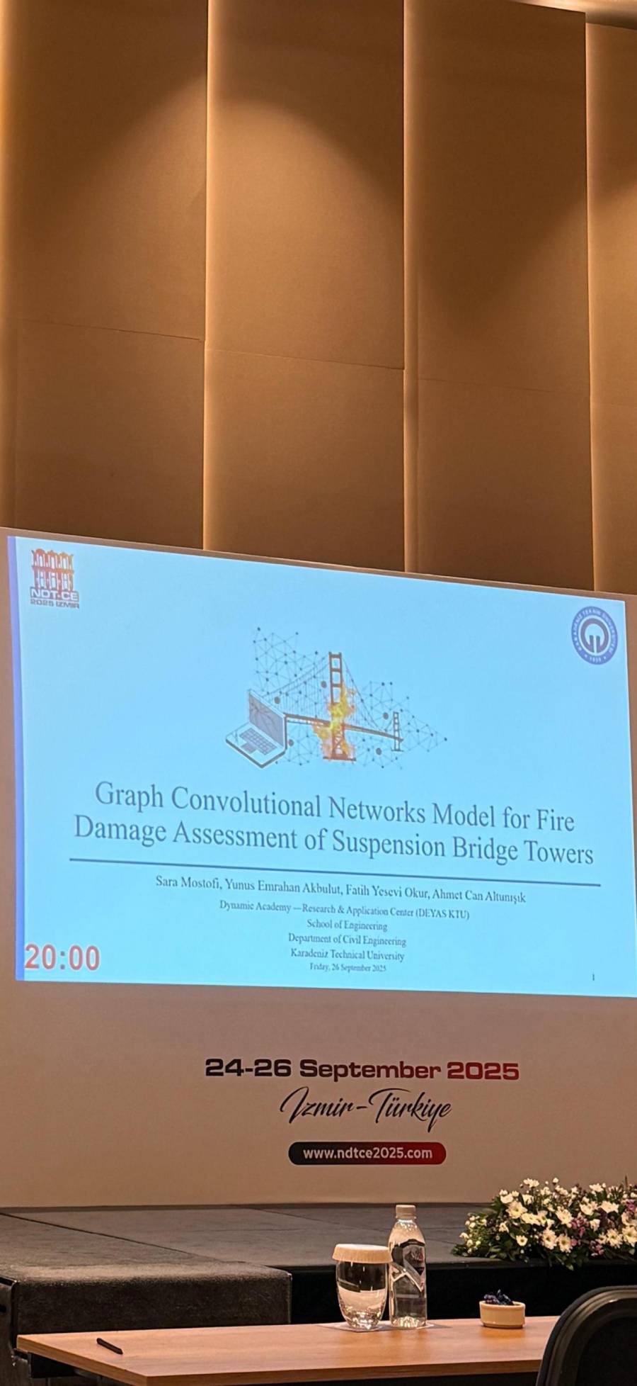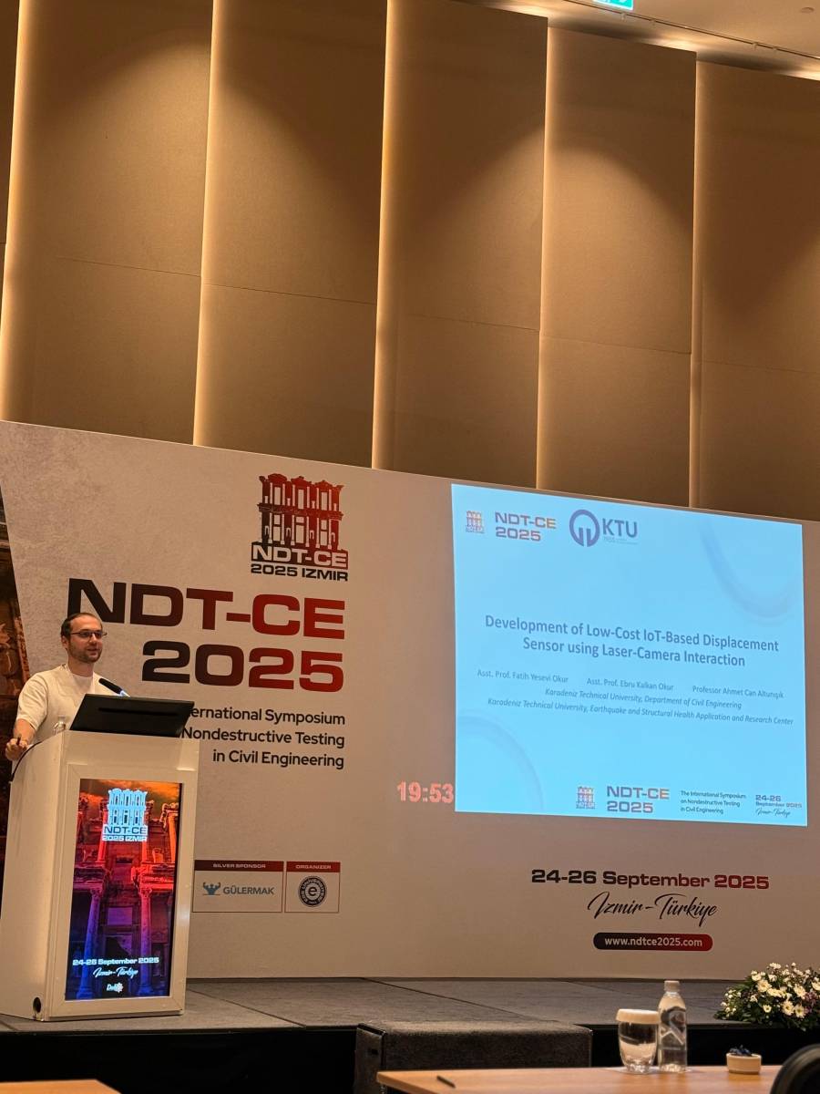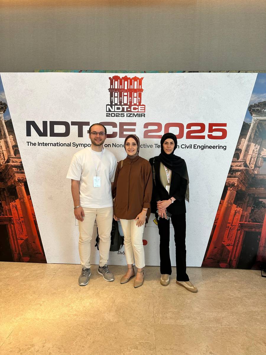 24–26 Eylül 2025 tarihlerinde İzmir’de düzenlenen International Symposium on Non-Destructive Testing in Civil Engineering (NDT-CE 2025) etkinliğine, merkez müdür yardımcımız Dr. Öğr. Üyesi Fatih Yesevi Okur, Dr. Öğr. Üyesi Ebru Kalkan Okur ve Sara Mostofi ile katılım sağlanmıştır.