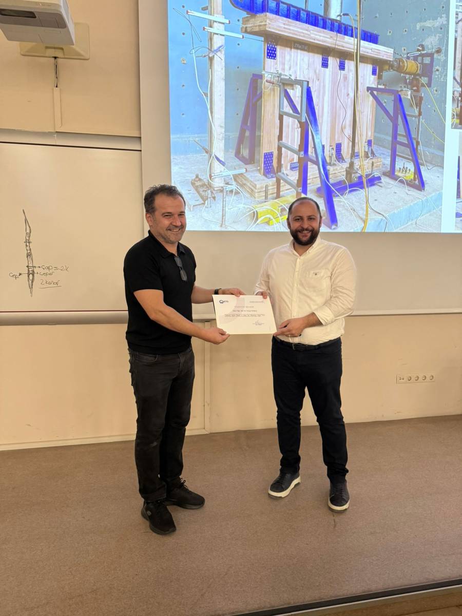 Sunumda, ülkemizin deprem gerçeği kapsamlı bir şekilde ele alınmış; depremin getirdiği riskler, geçmiş depremlerden edinilen deneyimler ve yapı güvenliği konusundaki temel gereklilikler tartışılmıştır. Ayrıca, ahşap yapı sistemlerinin deprem performanslarının yanı sıra sürdürülebilir bir yapı malzemesi olarak avantajları üzerine de durulmuştur. Bu bağlamda, geleneksel yapı yaklaşımlarının ötesine geçilerek yenilikçi ve çevre dostu çözümlerin önemine dikkat çekilmiş, katılımcılara hem akademik hem de uygulamaya yönelik bilgiler aktarılmıştır.