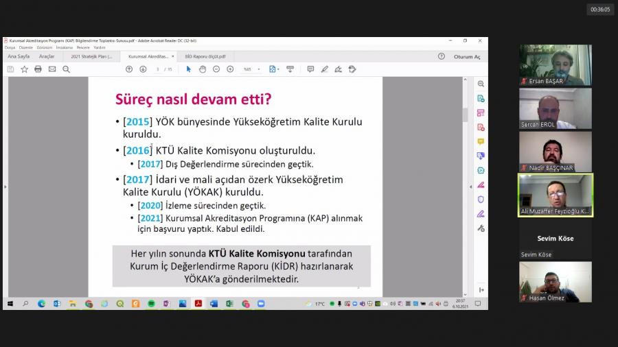 3. Akademik Personel toplantısı 06.10.2021 Çarşamba günü saat 20:00'de gerçekleştirildi. YÖKAK akreditasyon süreçleri ile ilgili bilgilendirme yapılarak, öğretim üyesi/elemanlarına süreç aktarıldı.