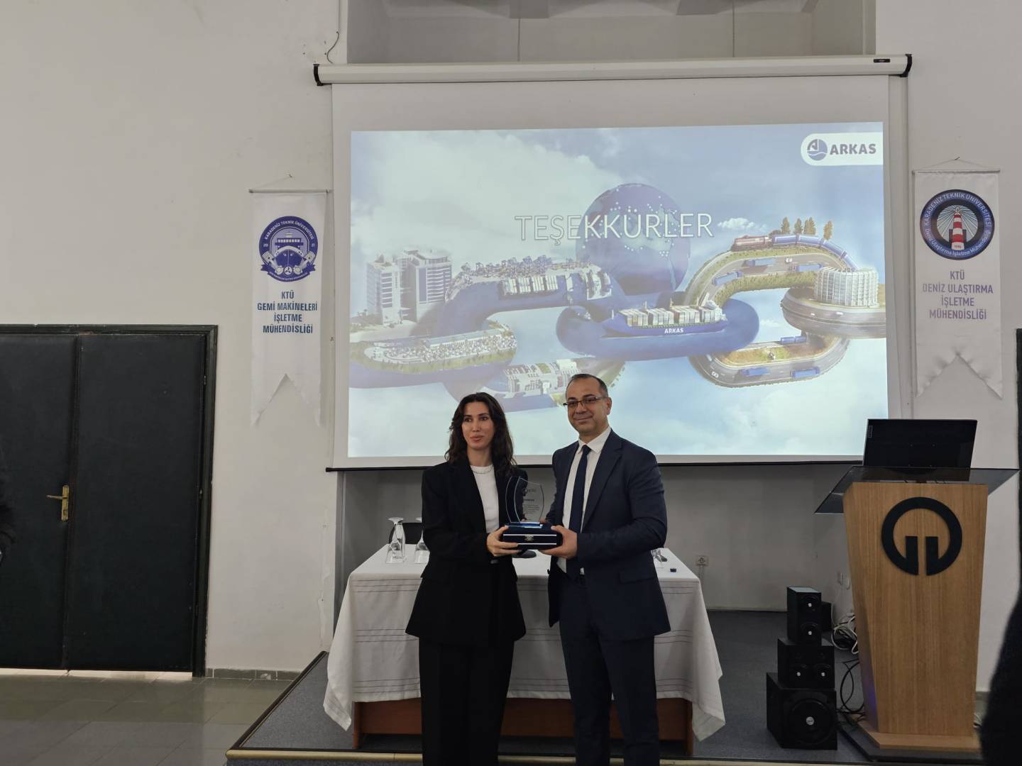 Etkinliğe, Arkas Denizcilik Personel Müdürü Ferit Gökdeniz katıldı. Sunumda, Arkas Denizcilik’in tarihçesi aktarılırken, filoda yürütülen genişletme çalışmaları ve geleceğe yönelik planlar hakkında öğrencilerimize bilgi verildi. Etkinlik, plaket takdimi ile tamamlandı.