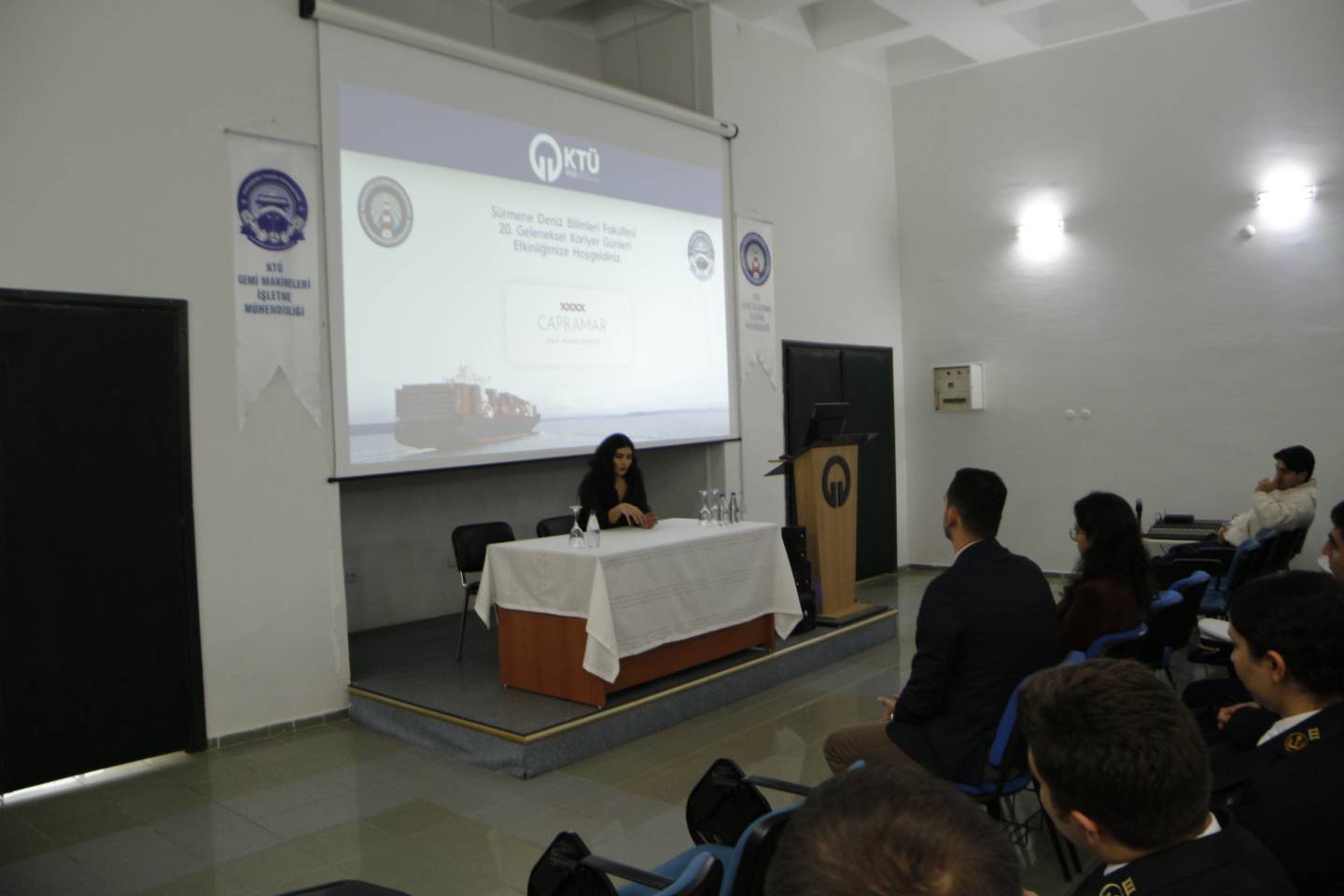 Capramar İnsan Kaynakları ve Operasyon Koordinatörü Aylin Yücelli, şirket ile çalışanlar arasındaki ideal ilişki yapısı ve operasyonel süreçlere dair değerlendirmelerde bulundu. Etkinlik, öğrencilerimizin sorularının yanıtlanmasının ardından plaket takdimi ile tamamlandı.