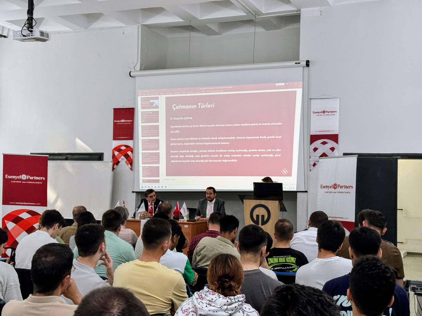 Karadeniz Teknik Üniversitesi Fen Bilimleri Enstitüsü Deniz Ulaştırma İşletme Mühendisliği Anabilim Dalı tarafından 23 Mayıs 2025 tarihinde Sahil Tesisleri Amfi Sınıfında düzenlenen “Deniz Ticaretinin Güncel Sorunları” seminerinde, konuşmacılar Esenyel Partners Avukatlık Bürosu, Av. Selçuk ESENYEL ve Av. Kpt. Cahit İSTİKBAL, denizcilik sektöründeki hukuki yapı üzerine kapsamlı ve değerli bilgiler paylaştılar. Seminerde özellikle Deniz İş Kanunu çerçevesinde hukuk kavramı, gemi adamlarının çalışma koşulları, sözleşme yapısı ve işverenle ilişkileri aktarılmış; sektörde sıkça karşılaşılan çatışma türleri örneklerle ele alınmıştır. Görev ve yetki karmaşaları, sözleşmeye aykırılık durumları, emir-komuta zincirindeki anlaşmazlıklar ile liman ve bayrak devleti uygulamalarından doğan hukuki çatışmalar; seminerin öne çıkan konuları arasında yer almıştır. Etkinlik, lisansüstü öğrencilerin denizcilik hukukuna ilişkin farkındalığını artıran verimli bir akademik buluşma niteliği taşımıştır.