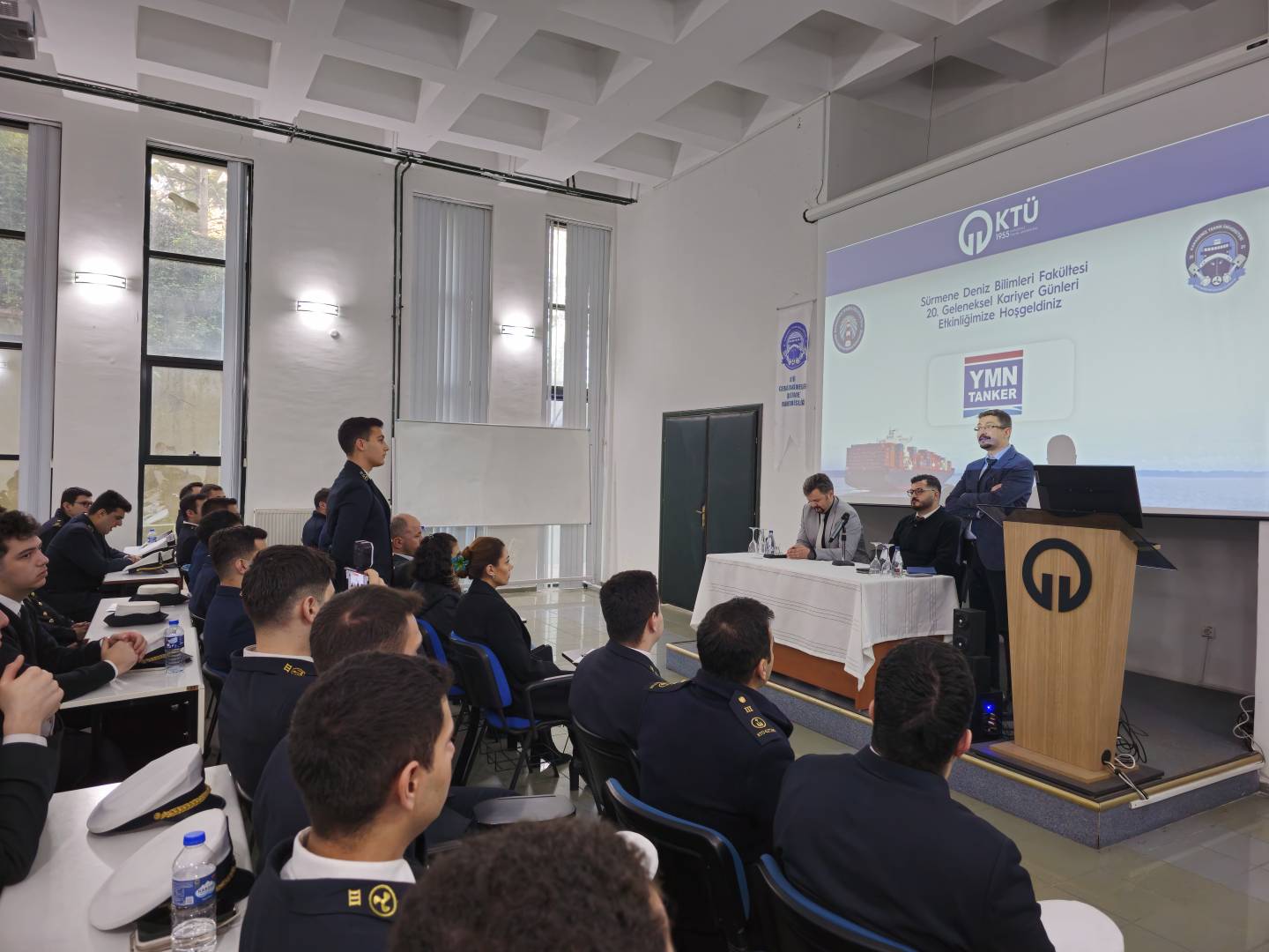Karadeniz Teknik Üniversitesi Sürmene Deniz Bilimleri Fakültesi Kariyer Kulübü tarafından düzenlenen ve iki hafta boyunca öğrencilerimizi sektör temsilcileriyle buluşturan 20. Kariyer Günlerinin son gününde, 05 Aralık 2025 tarihinde YMN Tanker yetkilileri öğrencilerimizle bir araya geldi.