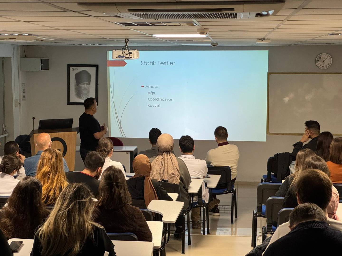 Fakültemiz lisans öğrencilerine yönelik olarak, DİS 304 Çene Hareketleri ve Oklüzyon Dersi kapsamında sektör–akademi iş birliğini destekleyen etkinlik gerçekleştirildi. Bu kapsamda, sektör temsilcisi olarak Fizyoterapist İbrahim TURGUT davet edilerek, "Temporomandibular ve Kraniofasiyal Disfonksiyonlar, Ağrı ve Rehabilitasyonu" başlıklı sunumunu öğrencilerimizle paylaştı.