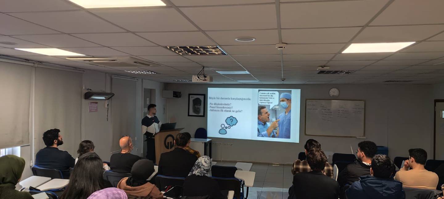 Eğitim kapsamında; zor hasta yönetimi, özgüven gelişimi, öfke kontrolü ve klinik ortamda profesyonel duruşun önemi teorik çerçevede ele alınmıştır. Program, öğrencilerimizin mesleki psikolojik dayanıklılıklarını artırmayı ve hasta-hekim iletişiminde karşılaşılabilecek güçlükleri yönetme becerilerini geliştirmeyi amaçlamaktadır.