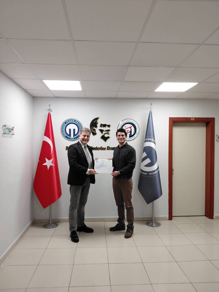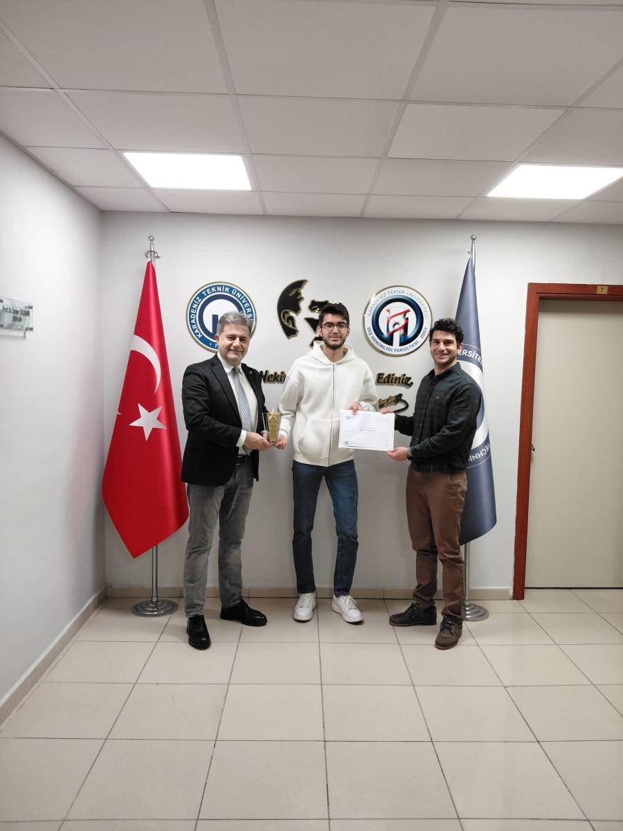 Dekanımız Prof. Dr. Tamer TAŞDEMİR Tarafından Poster Yarışmasında Dereceye Giren Öğrencilere Teşekkür Belgesi Takdim Edildi