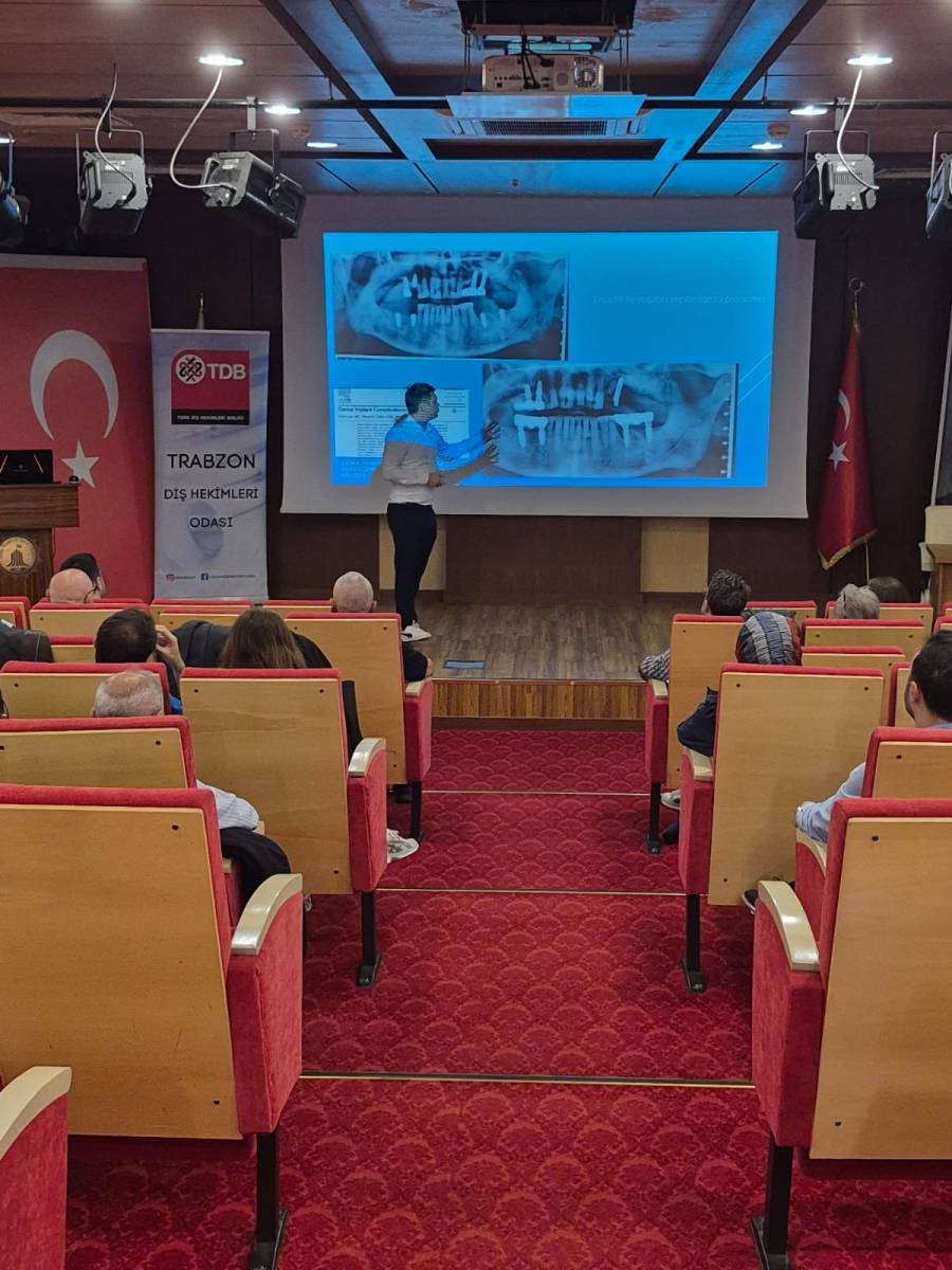 Trabzon Diş Hekimleri Odası tarafından 28 Eylül 2025 tarihinde Artvin’de düzenlenen bilimsel etkinlik kapsamında, Fakültemiz Klinik Bilimler Bölümü Ağız, Diş ve Çene Cerrahisi Anabilim Dalı öğretim üyesi Doç. Dr. Efe Can SİVRİKAYA “İmplant Başarısızlıkları”, Protetik Diş Tedavisi Anabilim Dalı öğretim üyesi Dr. Öğr. Üyesi Nesim ŞAHİN ise “İmplant Üstü Protezler” konulu sunumlarıyla katılımcılara güncel bilimsel gelişmeler hakkında bilgi paylaşımında bulunmuşlardır.