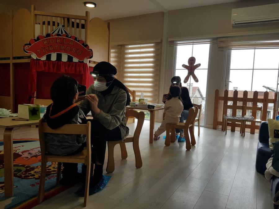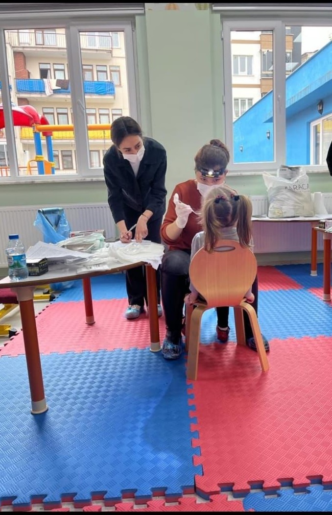 Ortahisar Kaymakamlığı İlçe Milli Eğitim Müdürlüğü’nün 10.03.2023 tarih ve E-66306514-605.99-72035641 sayılı oluru ile Fakültemiz Klinik Bilimler Bölümü Pedodonti Anabilim Dalı Başkanlığı öğretim üyesi Dr. Öğr. Üyesi Nagehan YILMAZ’ın yürütücülüğünde Pedodonti Anabilim Dalı Başkanı Prof. Dr. Tamer TÜZÜNER ve Arş. Gör. Dt. Merve Nur ÖZTÜRK, Arş. Gör. Dt. Elif Nahide ALBAYRAK ile Arş. Gör. Dt. Nihan ÇAKIR tarafından “Trabzon İli Ortahisar İlçesindeki Okul Öncesi Öğrenim Gören Çocuklarda Dental Erozyon Prevelansı ve İlişkili Faktörler” başlıklı akademik çalışma kapsamında rastgele seçilmiş olan ve aşağıda bilgileri ve ziyaret tarihleri olan anaokullarında çalışmaya katılmayı kabul eden velilerin çocuklarında ağız diş muayenesi yapılmış olup ilgili okullara, çalışmaya katılmış çocuklar hakkında çürük mevcudiyeti ve ağız diş sağlığı kapsamında geri bildirim yapılmıştır.