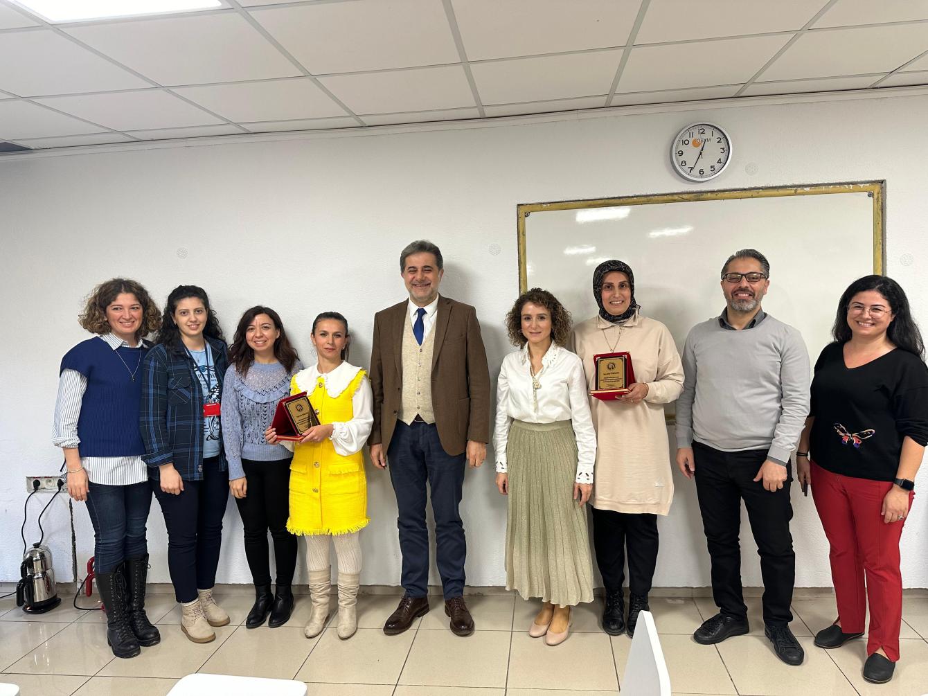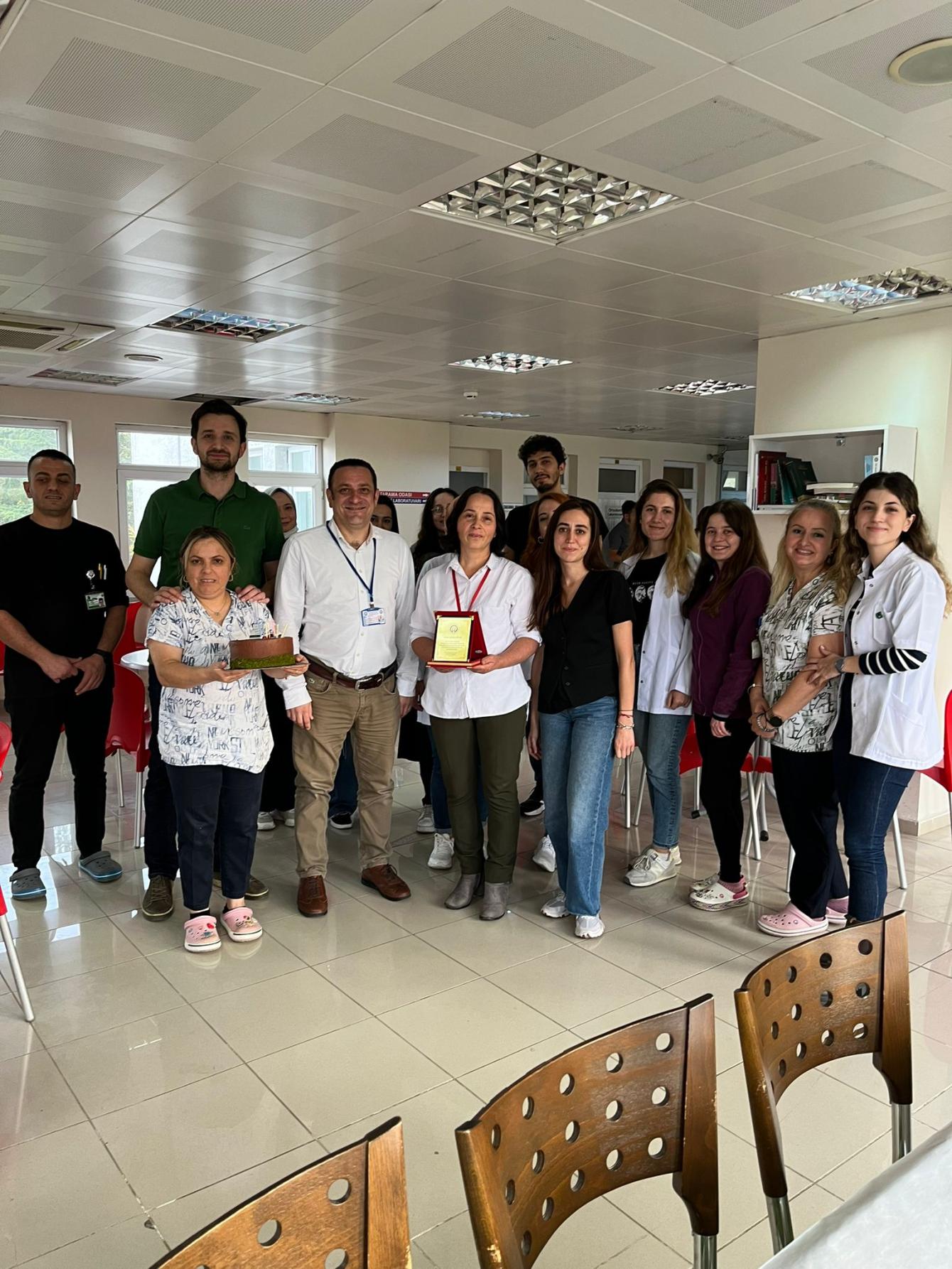 Fakültemiz personelinden Klinik Bilimleri Bölümü Endodonti Anabilim Dalı sekreterliği görevini yürütmekte iken Öğrenci İşleri Birimi’ne görevlendirilen Yeşim AYDIN, Restoratif Diş Tedavisi Anabilim Dalı sekreterliği görevini yürütmekte iken Kalite, İç Kontrol ve Stratejik Plan gibi spesifik konularla ilgilenmek üzere Yazı İşleri Birimi’nde görevlendirilen Nahide KUVVET ve Pedodonti Anabilim Dalı sekreterliği görevini yürütmekte iken Hasta Hakları Birimi’ne görevlendirilen Fatma ÇITLAK'a akademik ve idari personelin katılımıyla çalışmış oldukları dönem içerisinde göstermiş oldukları azim, başarı ve gayretlerinden ötürü plaket takdim edilmiştir.
