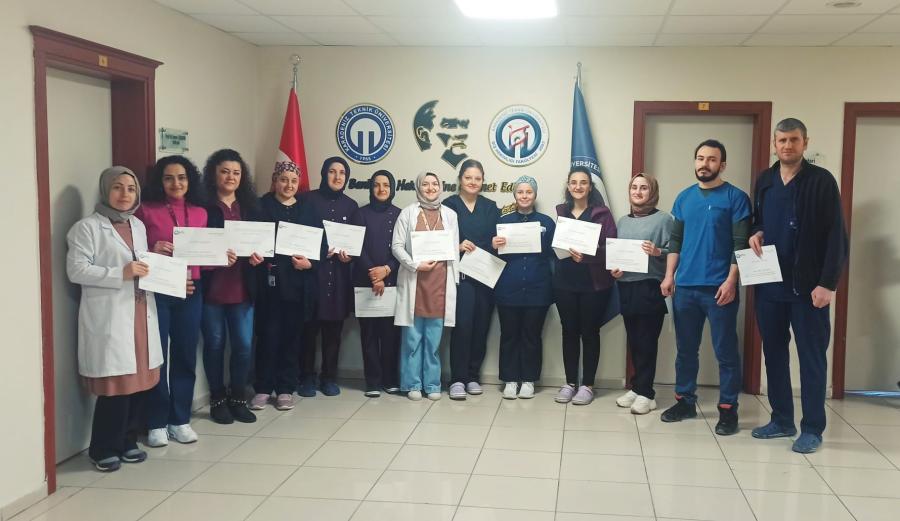 Fakültemiz Sağlıkta Kalite Çalışmaları (SKS) kapsamında organize edilen ve Üniversitemiz Tıp Fakültesi Acil Tıp Anabilim Dalı görevlilerince Temel Yaşam ve İleri Yaşam Desteği (CPR) eğitimi düzenlenmiş olup eğitime katılan personelimize belgeleri takdim edilmiştir.