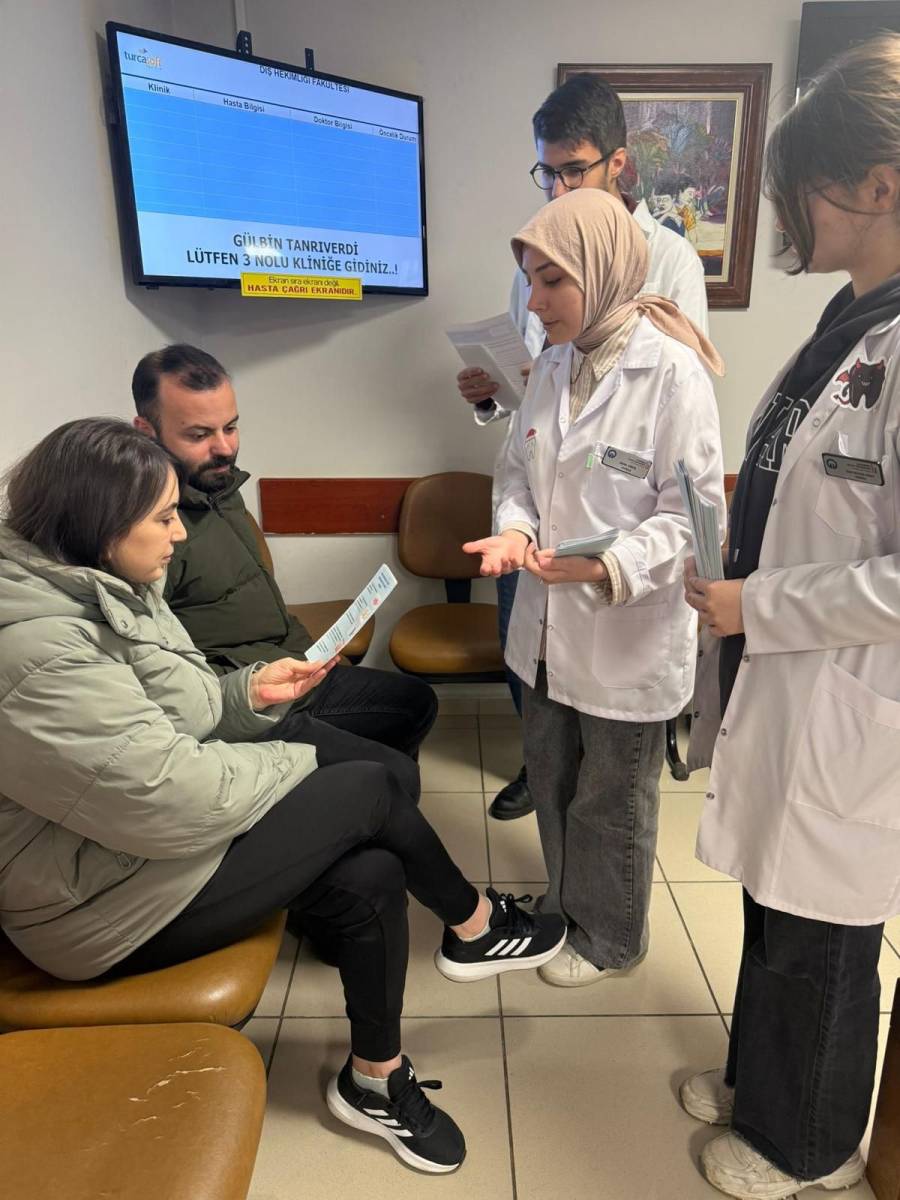 Etkinlik kapsamında öğrencilerimiz Meliha Rana Virdil, Nisanur Sevinç, Elif Kevser Fırat, Kağan Kahraman ve Esra Atabaş tarafından, periodontoloji alanında toplumda yaygın olarak görülen yanlış inanışlara yönelik bilgilendirme çalışmaları yapıldı. Bu kapsamda öğrencilerimiz, hasta bekleme alanlarında bulunan hastalara yönelik olarak periodontal hastalıklar, ağız hijyeninin önemi ve doğru bilinen yanlışlar hakkında bilgilendirmelerde bulundu.