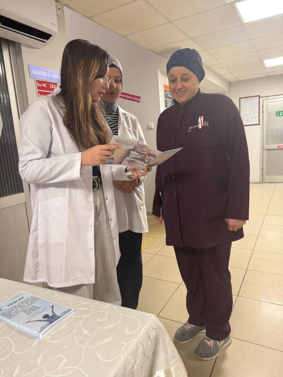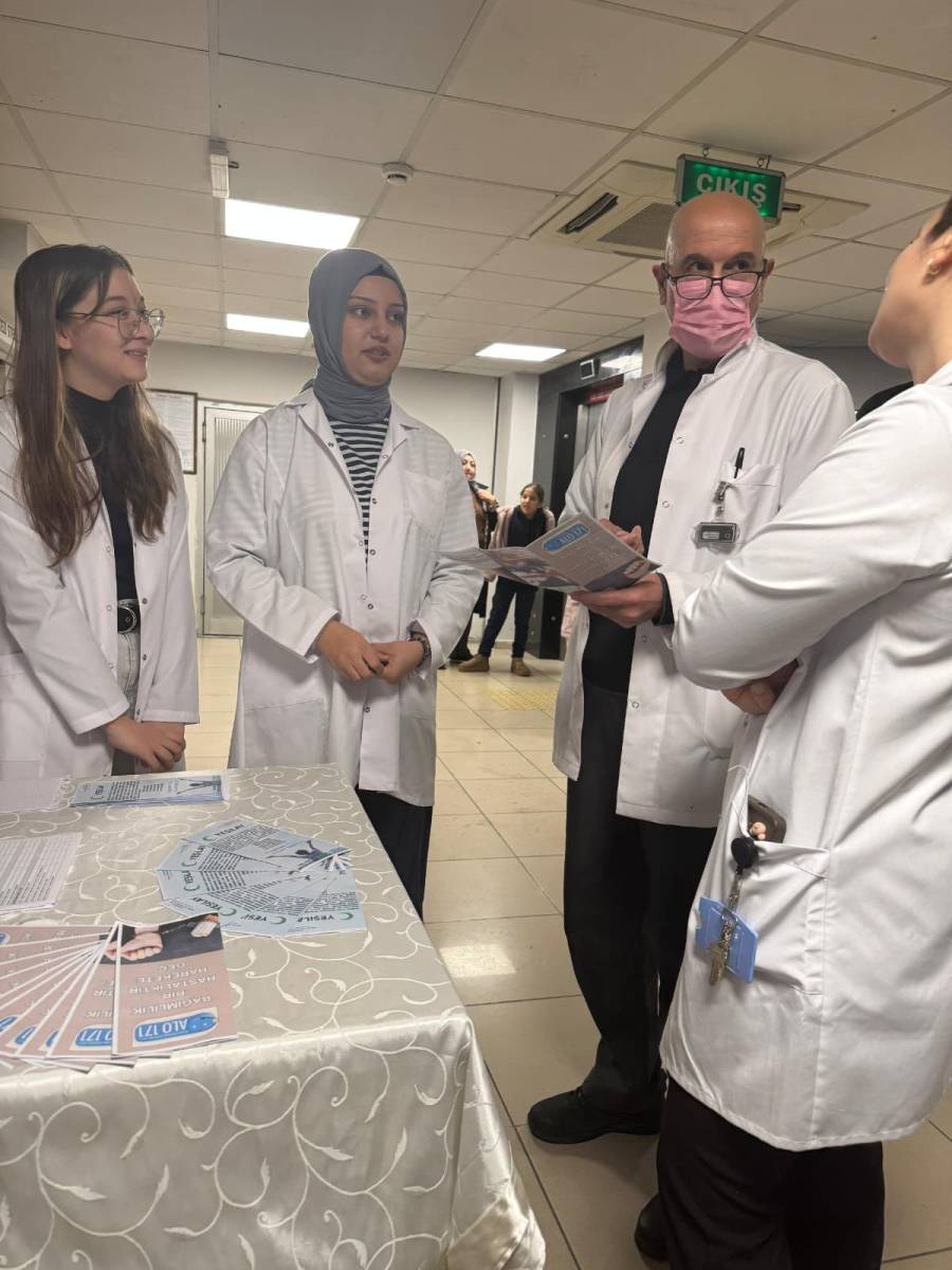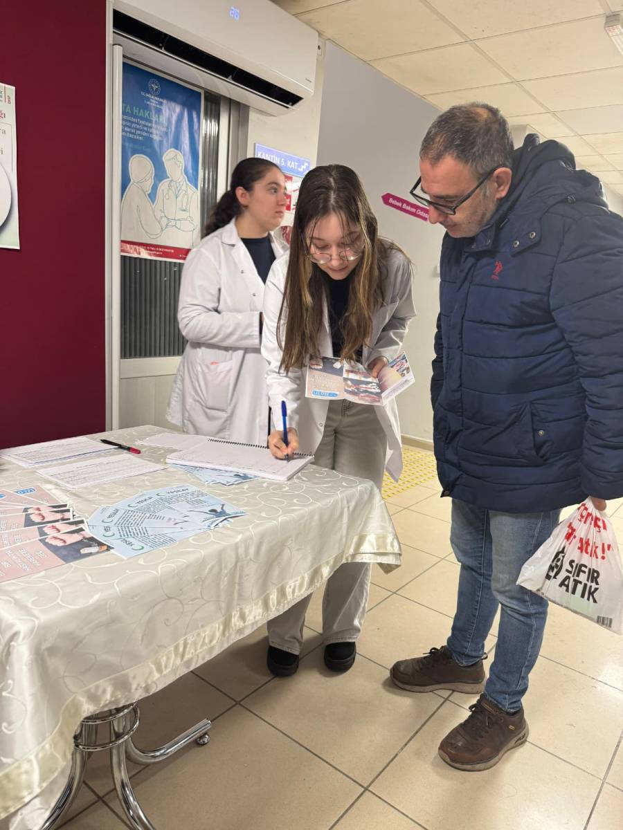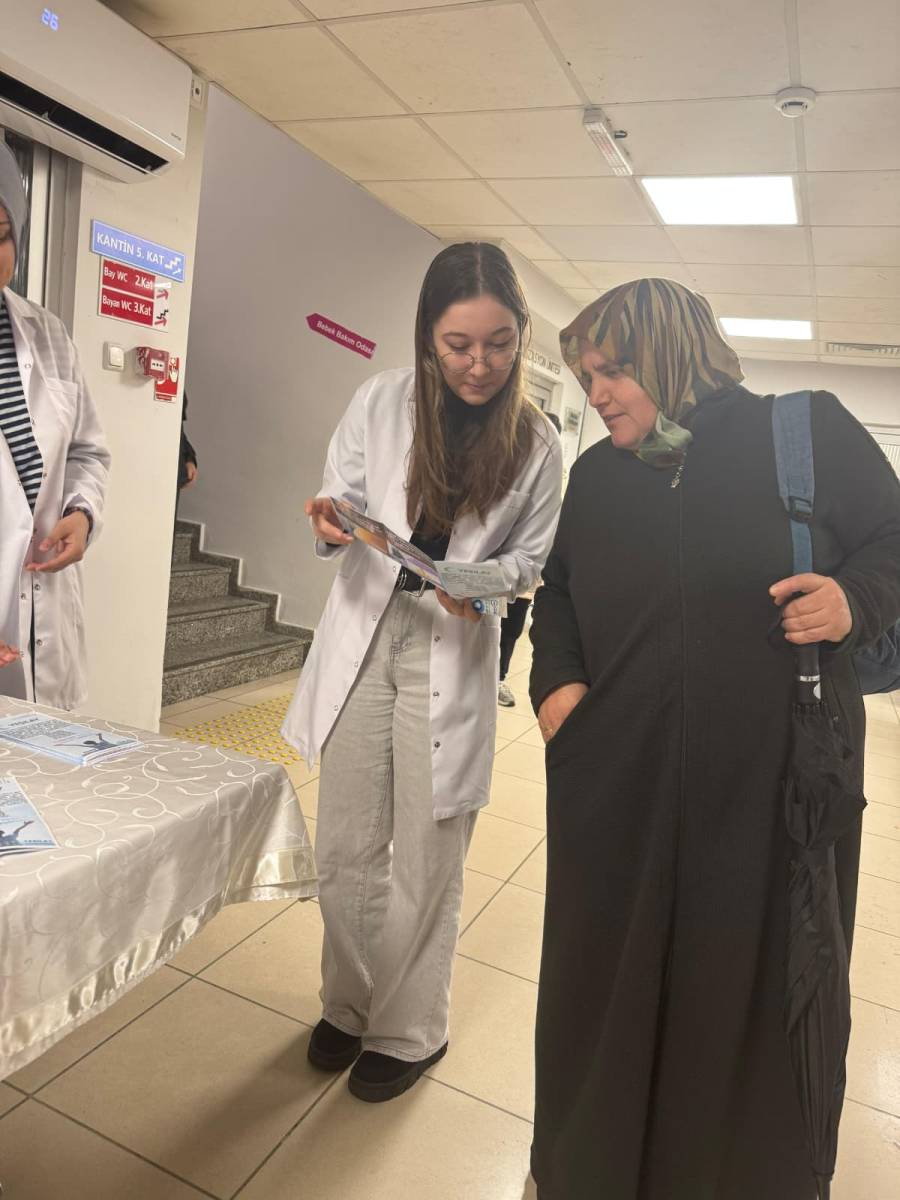 Etkinlik kapsamında öğrencilerimiz Tuğba Gül, İnci Nur Mazlum, Abdullah Taha Özfen, Cansu Arslan ve Belinay Bulut tarafından, Ağız, Diş ve Çene Radyolojisi hasta bekleme alanı önünde kurulan bilgilendirme standı aracılığıyla, internet, alkol ve sigara kullanımının sağlık üzerindeki etkilerine ilişkin bilgilendirmeler yapılmıştır.