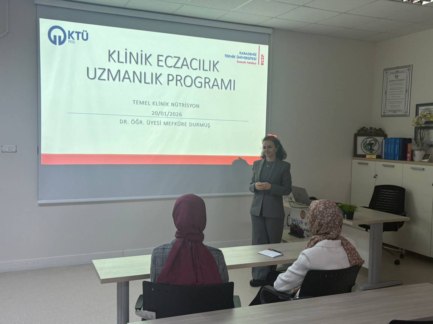 Fakültemiz Klinik Eczacılık Ana Bilim Dalı Başkanı Dr. Öğr. Üyesi Mefküre DURMUŞ’un yönetiminde yürütülen eğitim süreci, 19 Ocak 2026 tarihi itibarıyla 4 haftalık yoğun teorik programla başladı. Fakültemizin ilk klinik eczacılık uzmanlık öğrencilerine bu yeni ve akademik yolculuklarında başarılar diler, programın mesleğimize hayırlı olmasını temenni ederiz.
