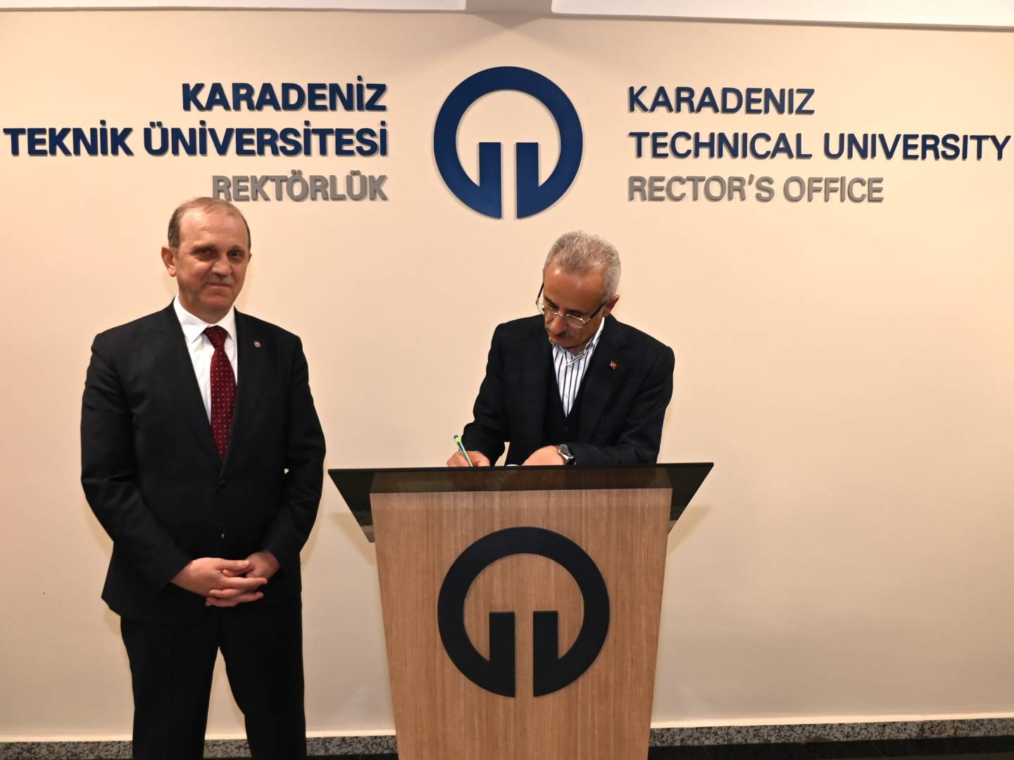The Minister of Transport and Infrastructure of the Republic of Türkiye, Abdulkadir Uraloğlu, who participated in the "Success Stories by KTU Graduates" program, visited the Rectorate after the program. Expressing his emotions and thoughts during the visit, Minister Uraloğlu thanked our Rector, Prof. Dr. Hamdullah Çuvalcı, for hosting U-Fest, the first transportation and infrastructure festival held at our university.