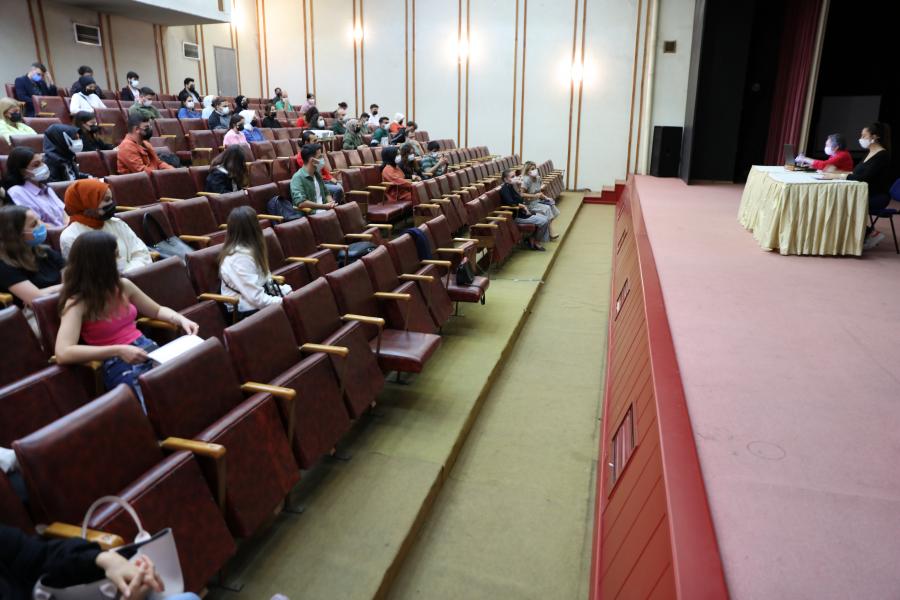 The "Internship Mobilization Program" carried out in cooperation with the "T.R. Presidential Human Resources Office" and "Black Sea Technical University (KTU)" has started. An introductory and information meeting was held at Atatürk Cultural Center Reşit TARAKÇIOĞLU Hall, moderated by "Prof. Dr. Hülya KALAYCIOĞLU", on 16 August 2021 with the participation of 65 trainee students.