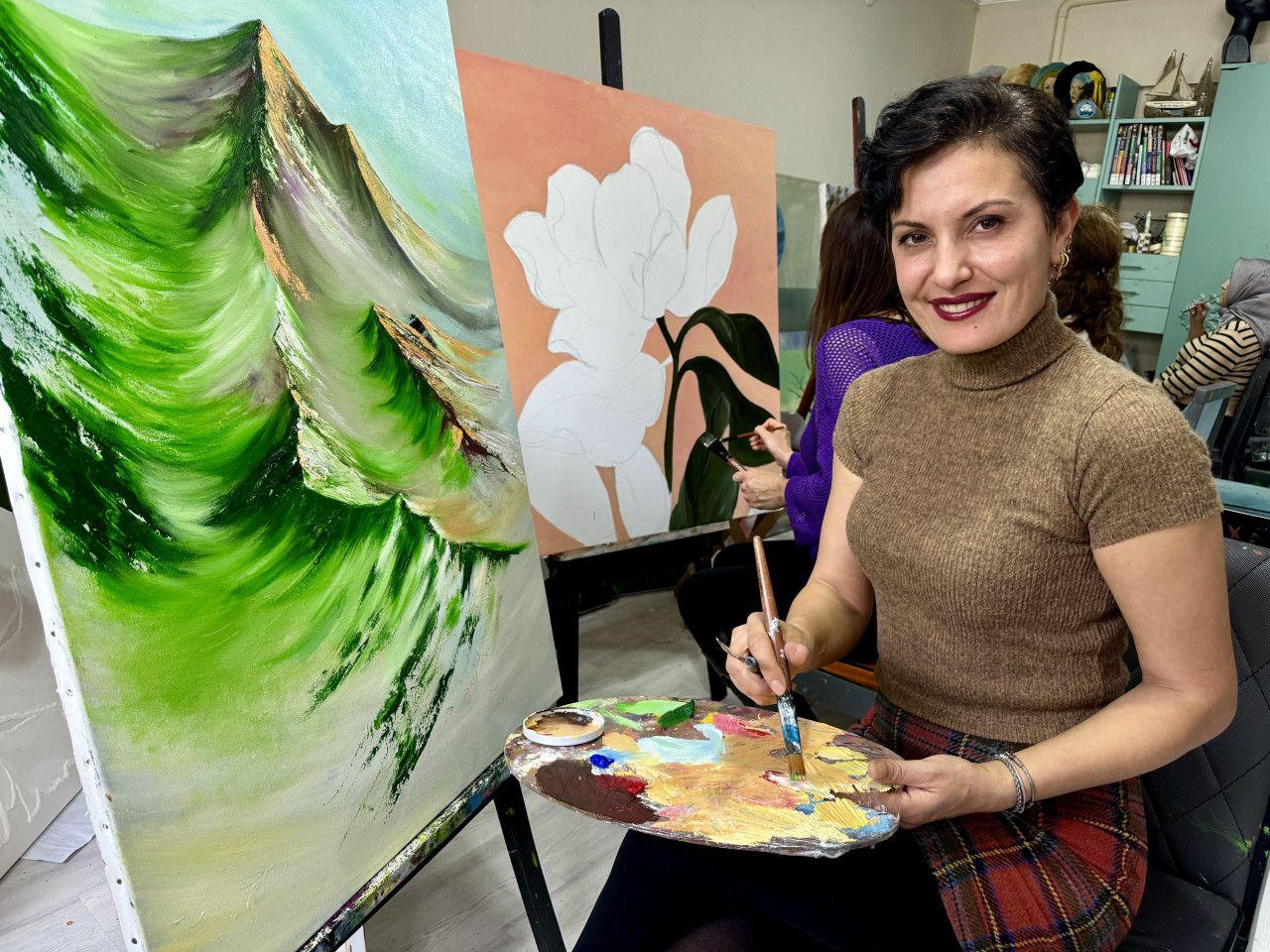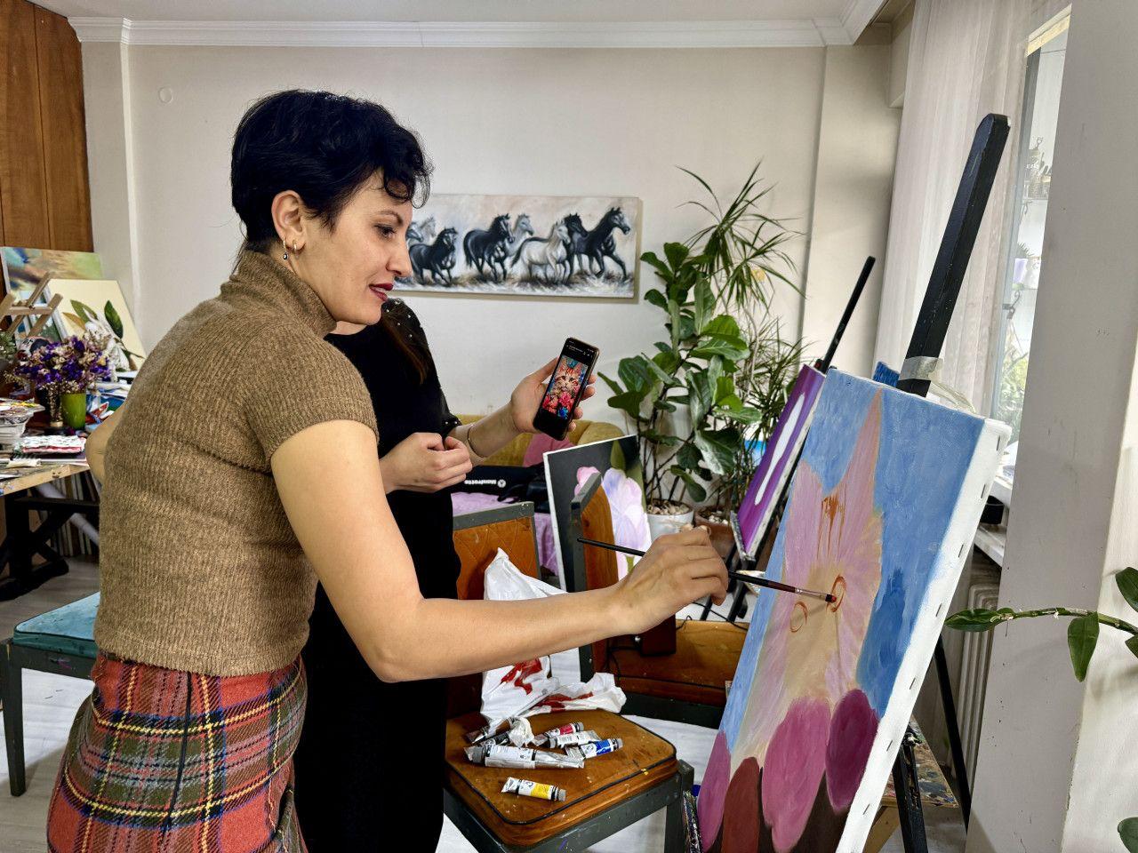 Trabzon'da özel kurs vererek öğrenci yetiştiren 42 yaşındaki ressam Derya Haliloğlu, lenf kanserinin üstesinden tedavilerin yanı sıra resim yaparak elde ettiği yüksek motivasyonla geldi.