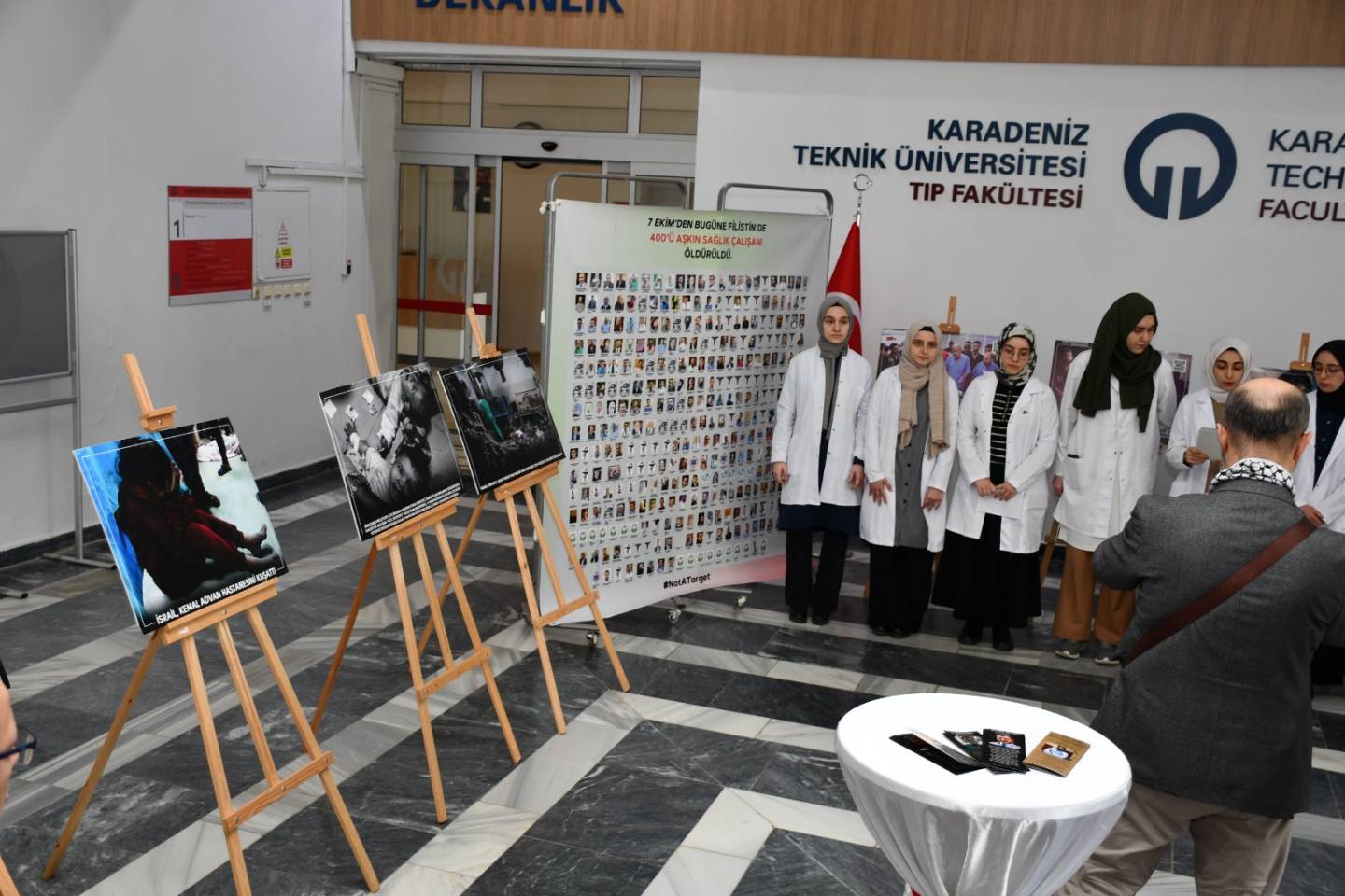 KTÜ Tıp Fakültesi Fuaye alanında, İsrail'in Gazze'deki sivil halka ve hastanelere yönelik saldırılarına tepki göstermek ve hayatını kaybeden binlerce kişiyi anmak amacıyla "İnsanlığa Beyaz Çağrı" adlı fotoğraf sergisi düzenledi. Üniversitenin Rektör yardımcıları, Sağlık Kültür ve Spor Daire Başkanı, Tıp Fakültesi Dekanı ve dekan yardımcıları, Farabi Hastanesi Başhekimi ve Başhekim yardımcıları, öğretim üyeleri, hekimler, hastane personeli ve fakülte öğrencilerinin katılımıyla serginin açılışı gerçekleşti.