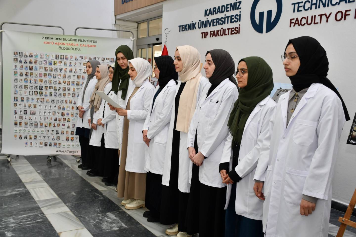 KTÜ Tıp Fakültesi Öğrencileri, İsrail'in Gazze'de sivil halka ve hastanelere yönelik saldırılarına tepki göstermeye devam ediyor.
