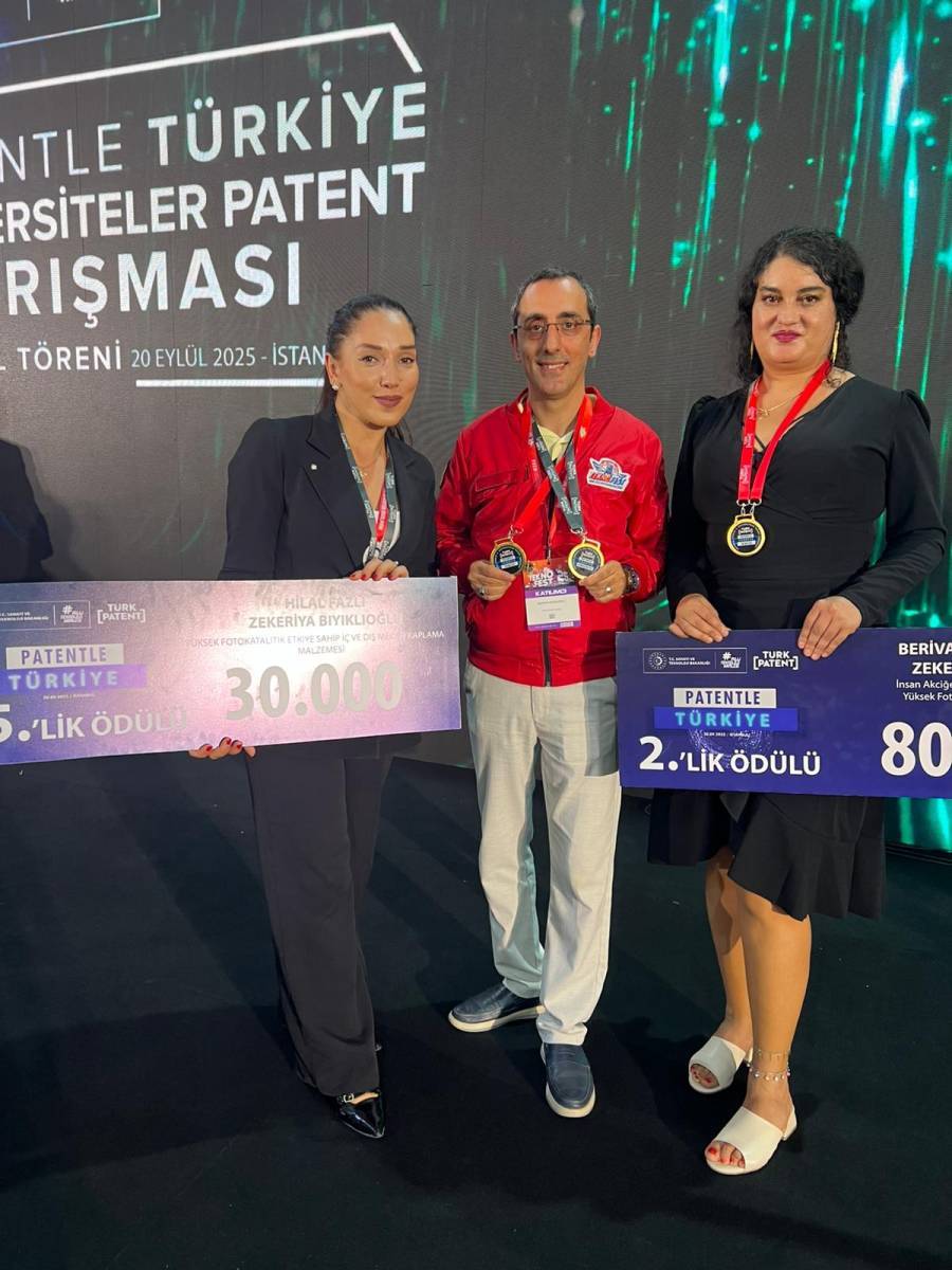 Sanayi ve Teknoloji Bakanlığı himayelerinde Türk Patent ve Marka Kurumu tarafından düzenlenen **“Patentle Türkiye Yarışması”**nda enstitümüz Kimya ABD doktora öğrencilerinden Berivan Arın ÖZTÜRMEN geliştirdiği patentle 2'ncilik Ödülünü kazanmıştır. Enstitümüz Kimya ABD Doktora öğrencilerinden Hilal Fazlı ise 15’incilik Ödülünü kazanmıştır. Hilal Fazlı ayrıca Uluslararası Patent Fuarı'ndan (ISIF'25) "“Yüksek Fotokatalitik Etkiye Sahip İç ve Dış Mekân Kaplama Malzemesi”" başlıklı projesi ile Bronz Madalya kazanmıştır.