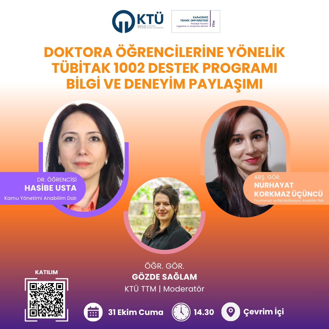 KTÜ TTM Tarafından Düzenlenen Doktora Öğrencilerine Yönelik TÜBİTAK 1002 Destek Programı Bilgi ve Deneyim Paylaşımı Etkinliği'ne Davetlisiniz????