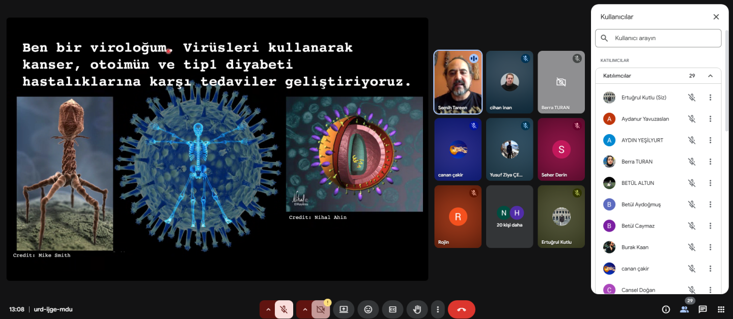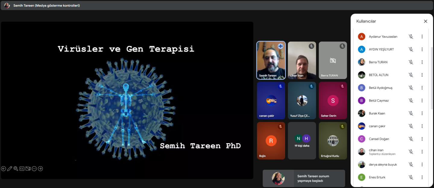 Sunum, Sana Biyoteknoloji şirketinden virolog Dr. Semih Tareen tarafından gerçekleştirildi. Etkinlikte, virüslerin biyolojik özellikleri, gen terapisi uygulamalarındaki rolleri ve güncel bilimsel gelişmeler ele alındı.