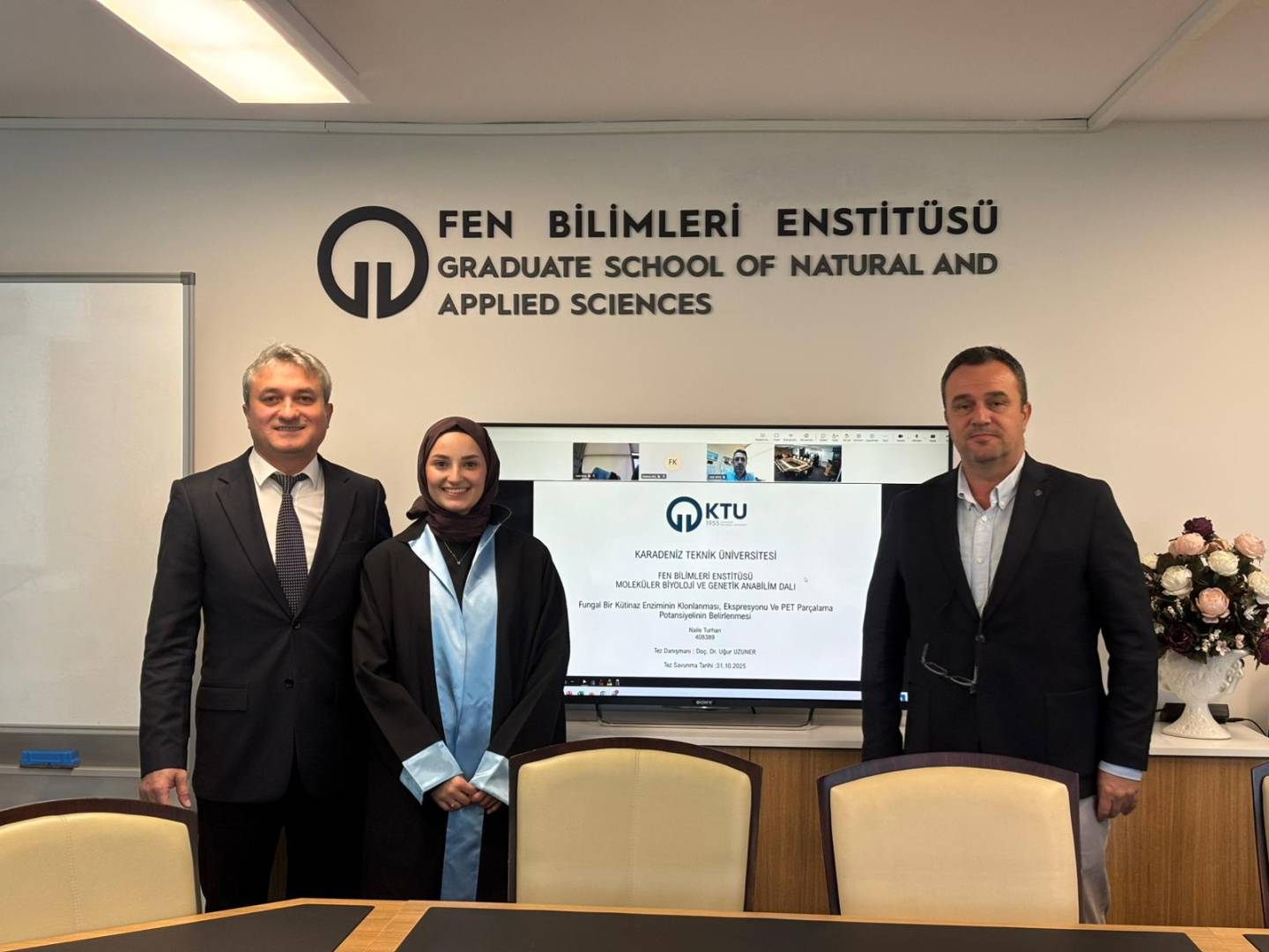 Moleküler Biyoloji ve Genetik Anabilim Dalı yüksek lisans öğrencilerimizden Naile TURHAN, Doç. Dr. Uğur UZUNER danışmanlığında yürüttüğü ‘Fungal Bir Kütinaz Enziminin Klonlanması, Ekspresyonu ve PET Parçalama Potansiyelinin Belirlenmesi’ başlıklı tez çalışmasını başarıyla savunmuştur.