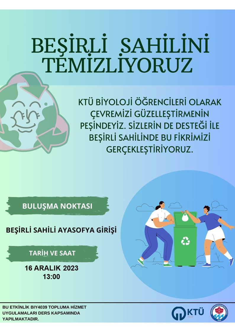 Topluma Hizmet Uygulamaları dersi kapsamında son sınıf öğrencilerimiz Beşirli Sahilini Temizliyoruz etkinliği düzenliyorlar. Katılımlarınızı bekleriz.