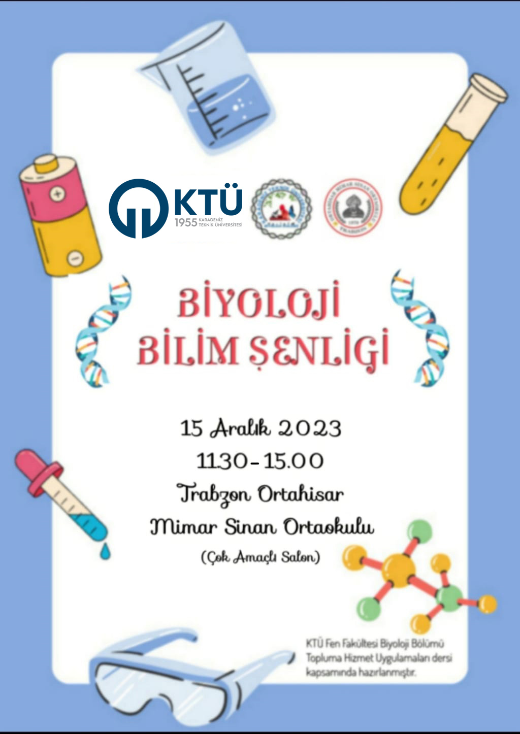 Topluma Hizmet Uygulamaları dersi kapsamında öğrencilerimizin Ortaokul öğrencileri için düzenlediği Biyoloji Bilim Şenliğine davetlisiniz.