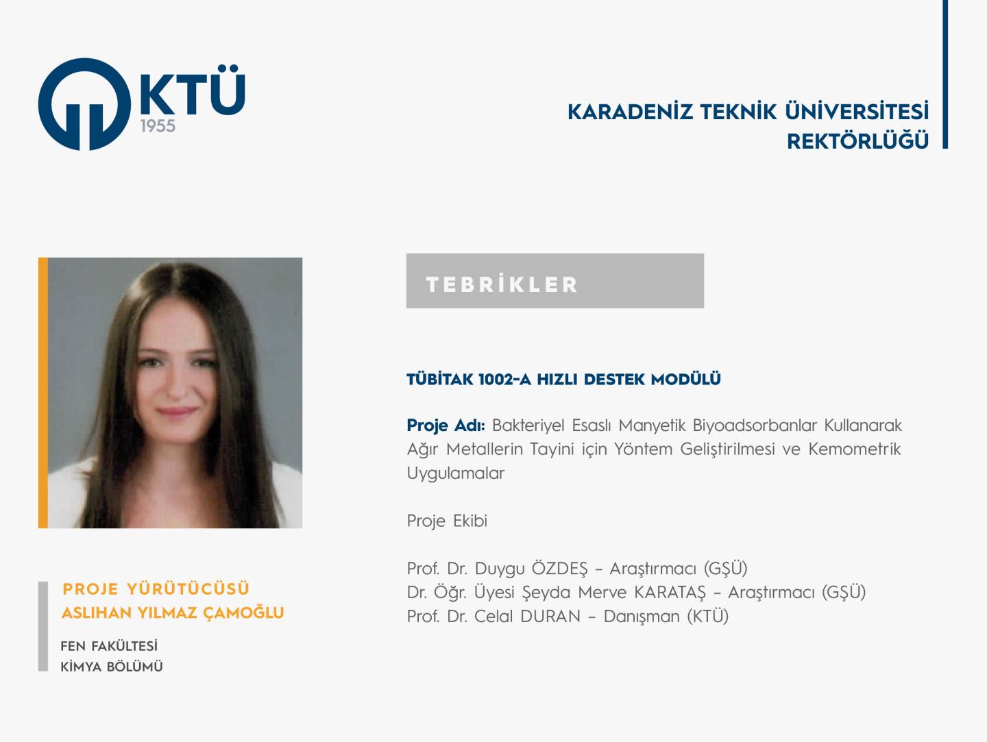 Projesi desteklenen Arş. Gör. Aslıhan YILMAZ ÇAMOĞLU’nu tebrik eder, başarılarının devamını dileriz.