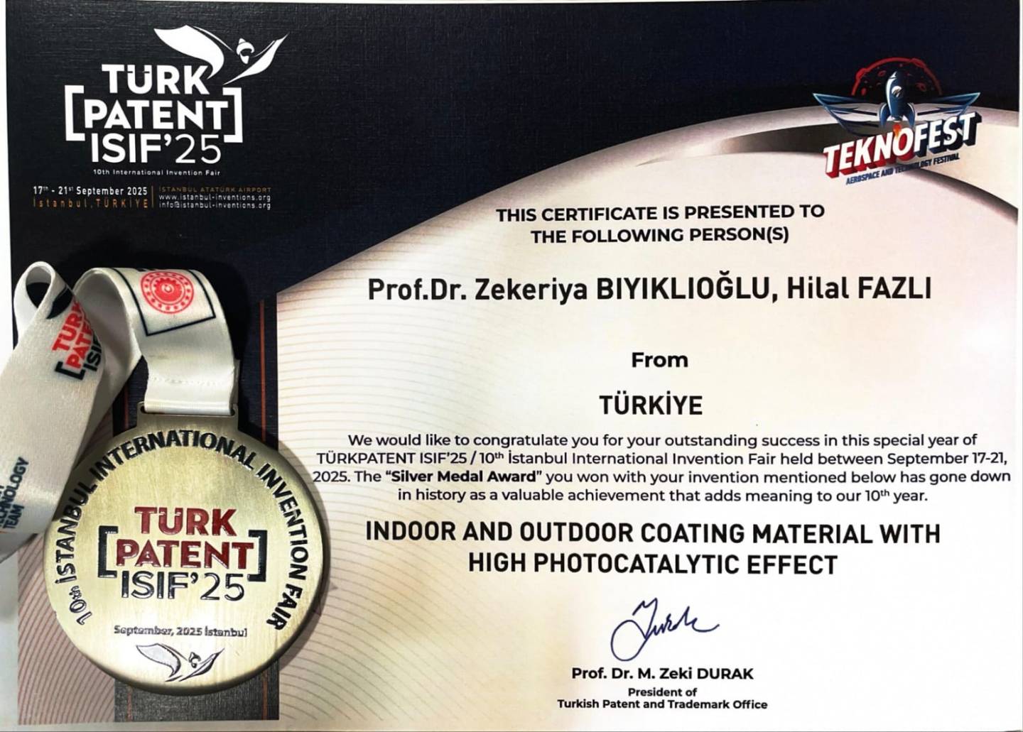 TEKNOFEST kapsamında düzenlenen 10. İstanbul Uluslararası Buluş Fuarı’nda (ISIF’25); Karadeniz Teknik Üniversitesi Fen Fakültesi 1 Gümüş ve 2 Bronz olmak üzere 3 Madalya kazandı.