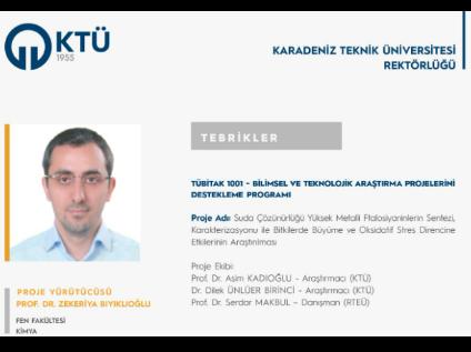 Prof. Dr. Zihni DEMİRBAĞ'a TÜBİTAK 1001 Bilimsel ve Teknolojik Araştırma Projelerini Destekleme Programı kapsamında proje desteği