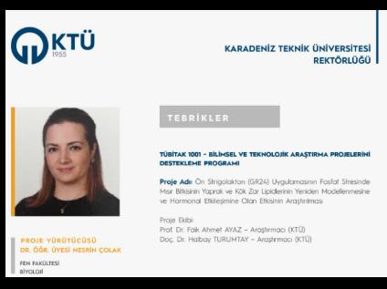 Dr. Dilek ÜNLÜER BİRİNCİ'ye TÜBİTAK 1002-A Hızlı Destek Proje Desteği