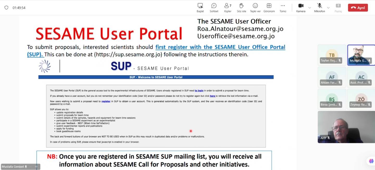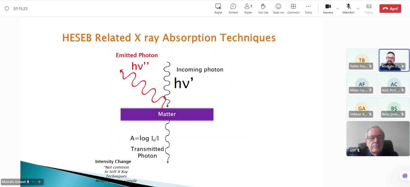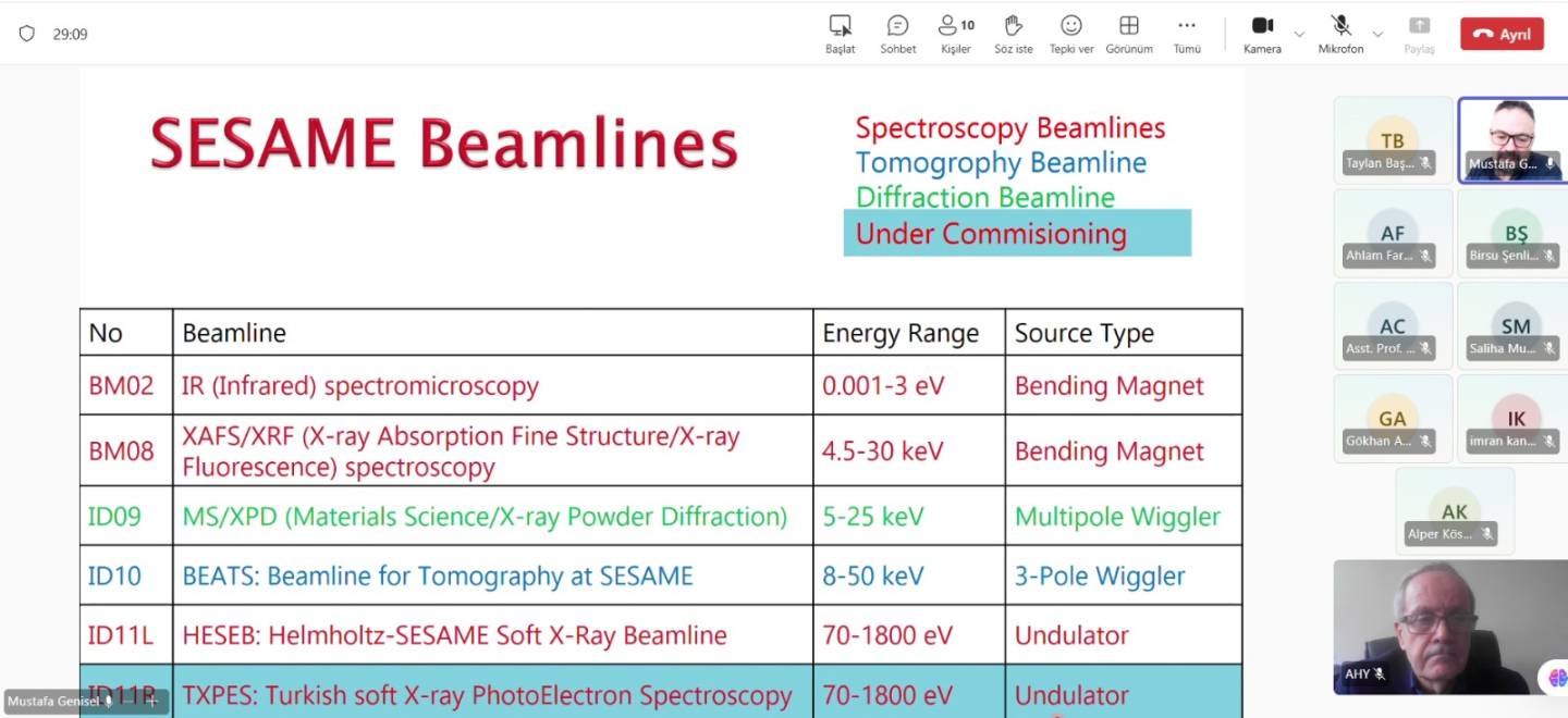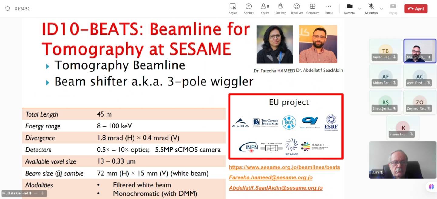 11.02.2026 Çarşamba günü Fizik Bölümü etkinlikleri kapsamında, Ortadoğu’nun Uluslararası Sinkrotron Işığı Mükemmeliyet Merkezi; SESAME’den (Synchrotron-light for Experimental Science and Applications in the Middle East), HESEB Demethattı Sorumlusu Dr. Mustafa Fatih GENİŞEL “SESAME ve Araştırma Olanakları” başlıklı bir çevrimiçi seminer gerçekleştirdi. Ürdün SESAME’den gerçekleştirilen bu seminer kapsamında, Dr. Mustafa Fatih GENİŞEL tarafından Türkiye’nin de ortağı olduğu bu araştırma laboratuvarındaki sinkrotron ışığının bilim ve teknolojideki kritik rolü, SESAME’nin sunduğu ileri araştırma olanakları, demet hatları ve kullanıcı olma süreçleri ayrıntılı olarak ele alındı.